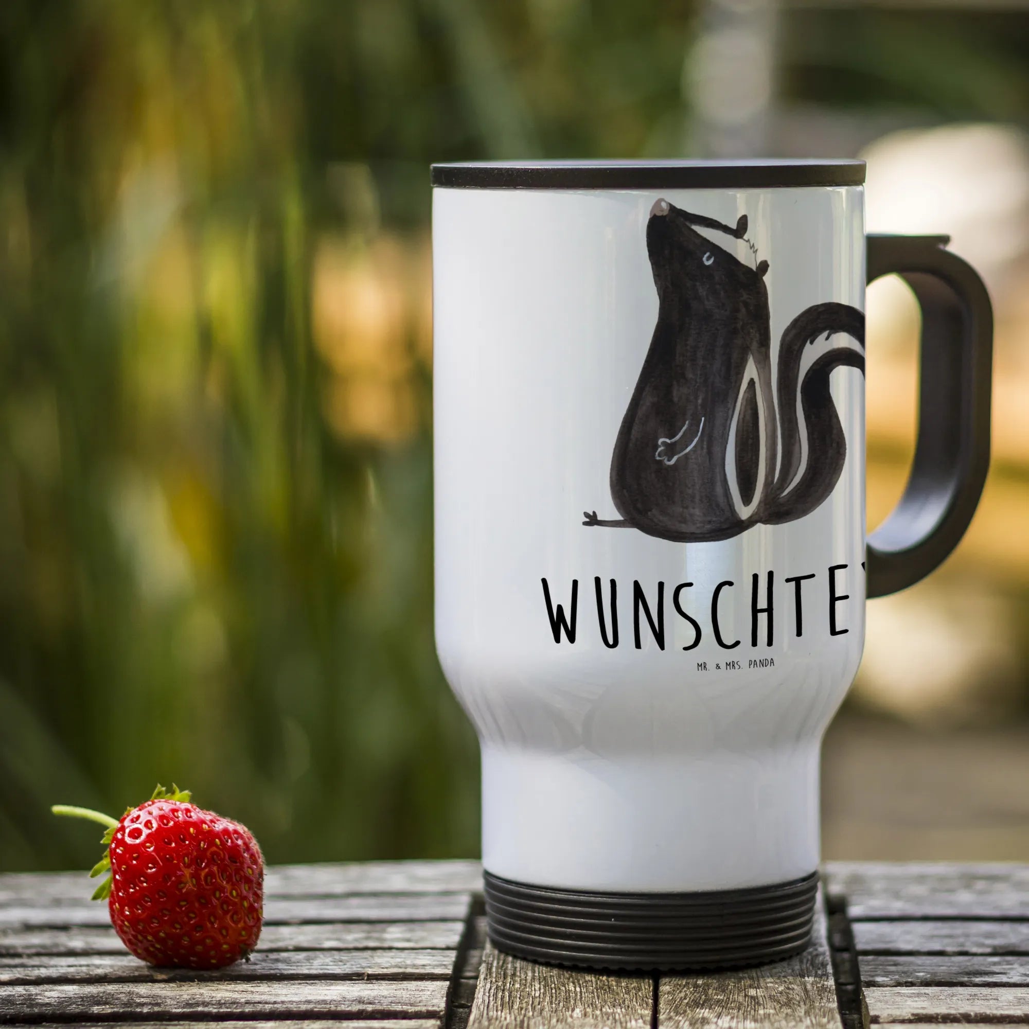 Personalisierter Thermobecher Stinktier sitzend