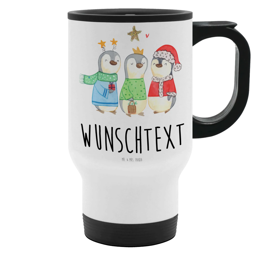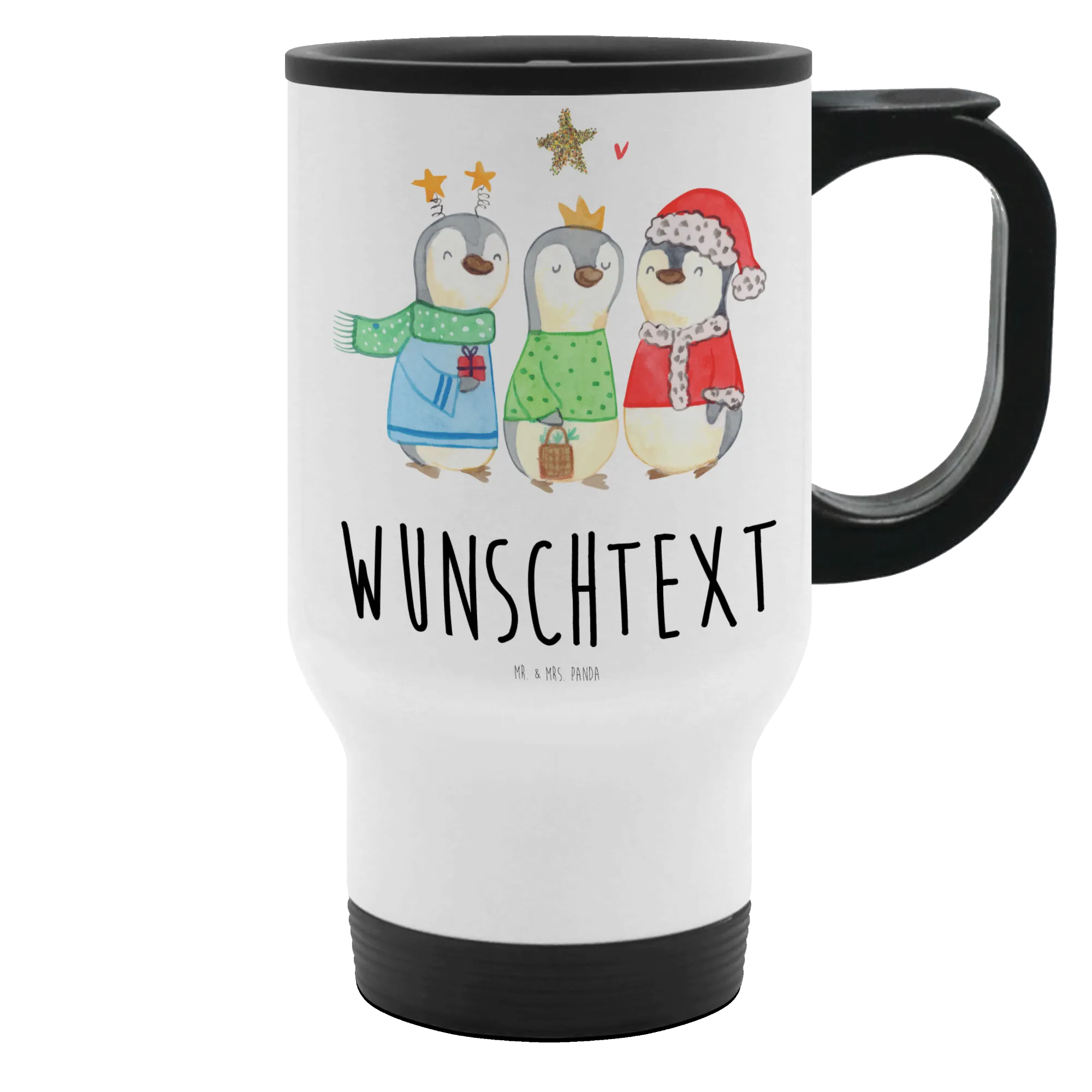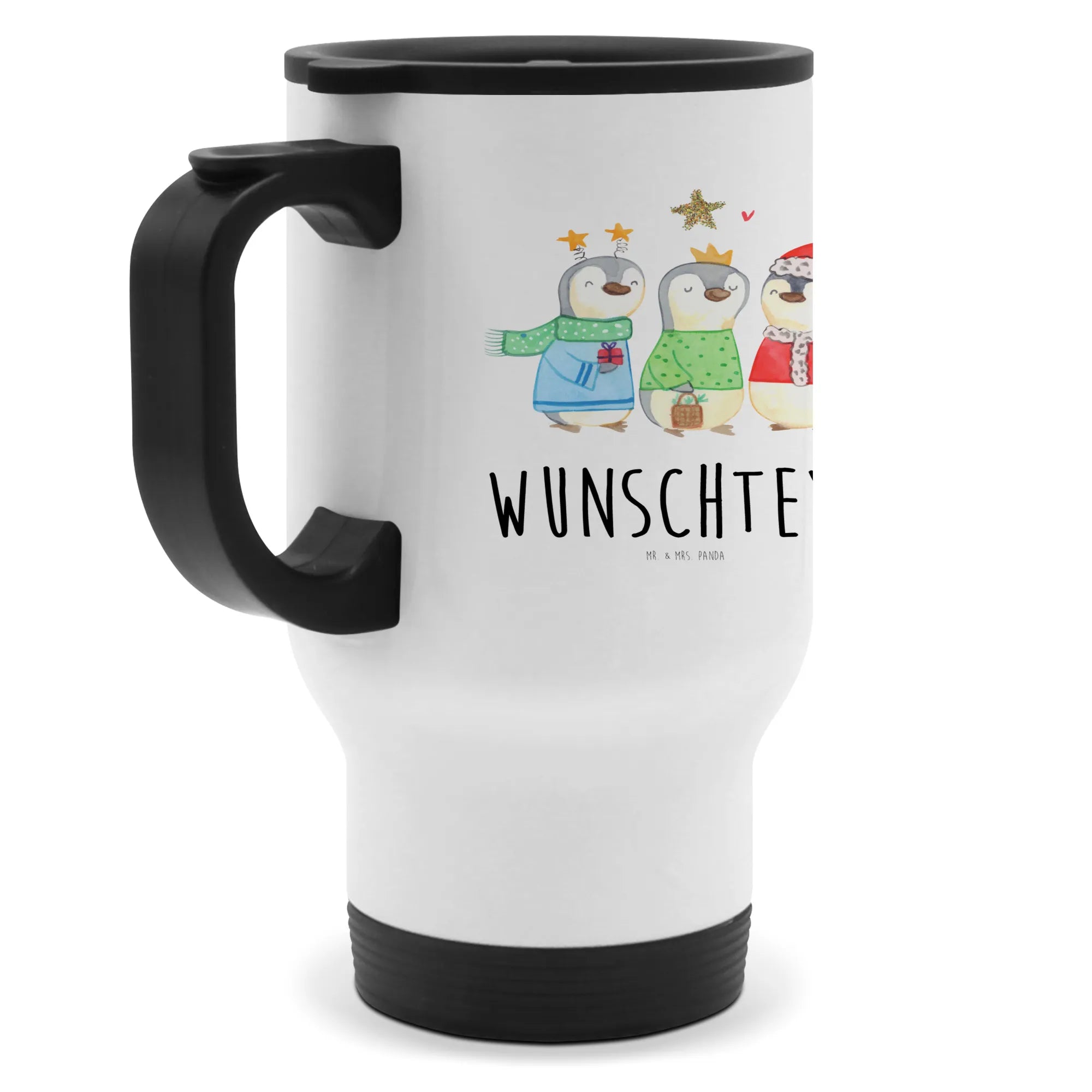 Der personalisierte Thermobecher "Winterzeit Heilige drei Könige" von Mr. & Mrs. Panda ist das perfekte Geschenk für die kühle Jahreszeit. Mit einem fabelhaften Motiv von drei süßen Pinguinen, die liebevoll als die heiligen drei Könige verkleidet sind, zaubert er nicht nur ein Lächeln auf die Gesichter seiner Beschenken, sondern bringt auch ein Stückchen Weihnachtszauber in jeden Alltag hinein.