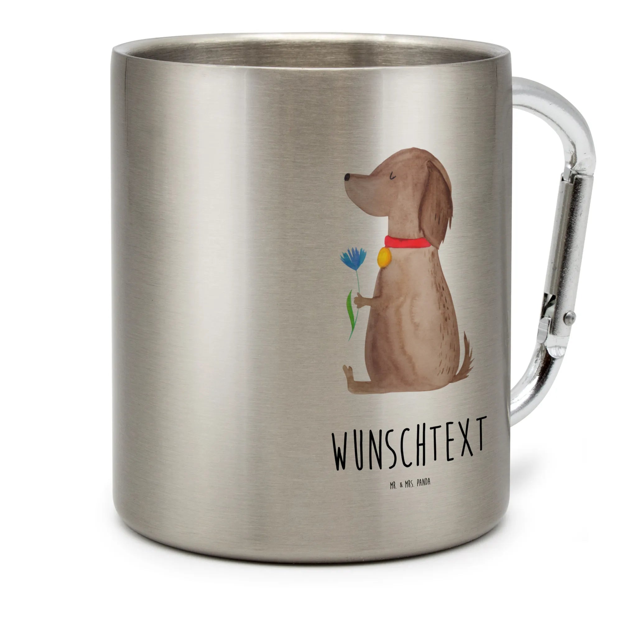 Spersonalizowany kubek ze stali nierdzewnej pies kwiat – Mr. & Mrs. Panda