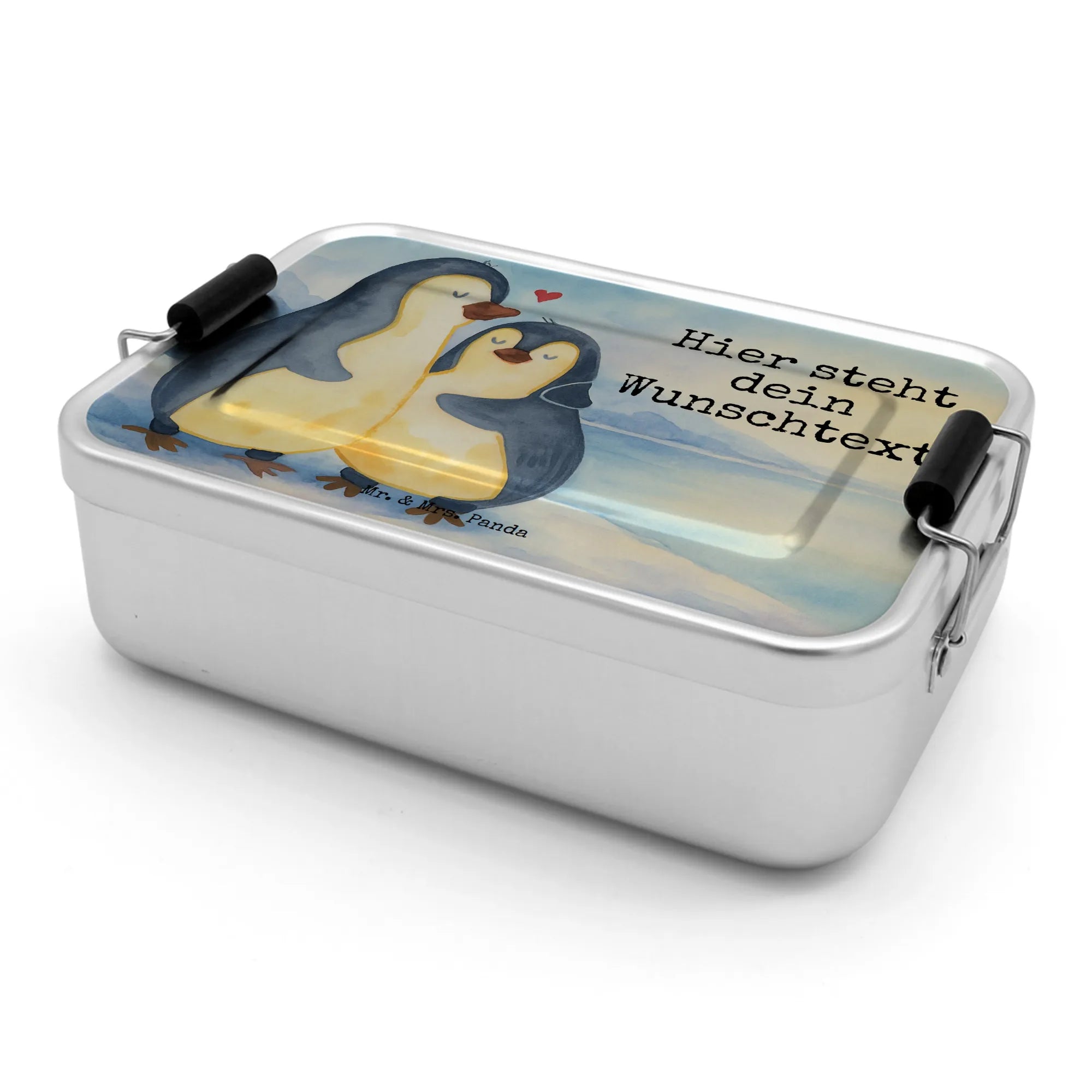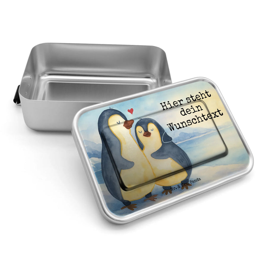 Spersonalizowany metalowy pojemnik na lunch Pingwin przytulać Design Brotdose mit Namen, Brotbox mit Namen, Brotdose, Brotbox, Schule, Geschenk mit Namen, Kindergarten, Uni, Pinguin, Liebesgeschenk, Liebespaar, Liebesbeweis, Jahrestag, Liebe, Hochzeit, Verlobung, Hochzeitstag, Hochzeitsgeschenk