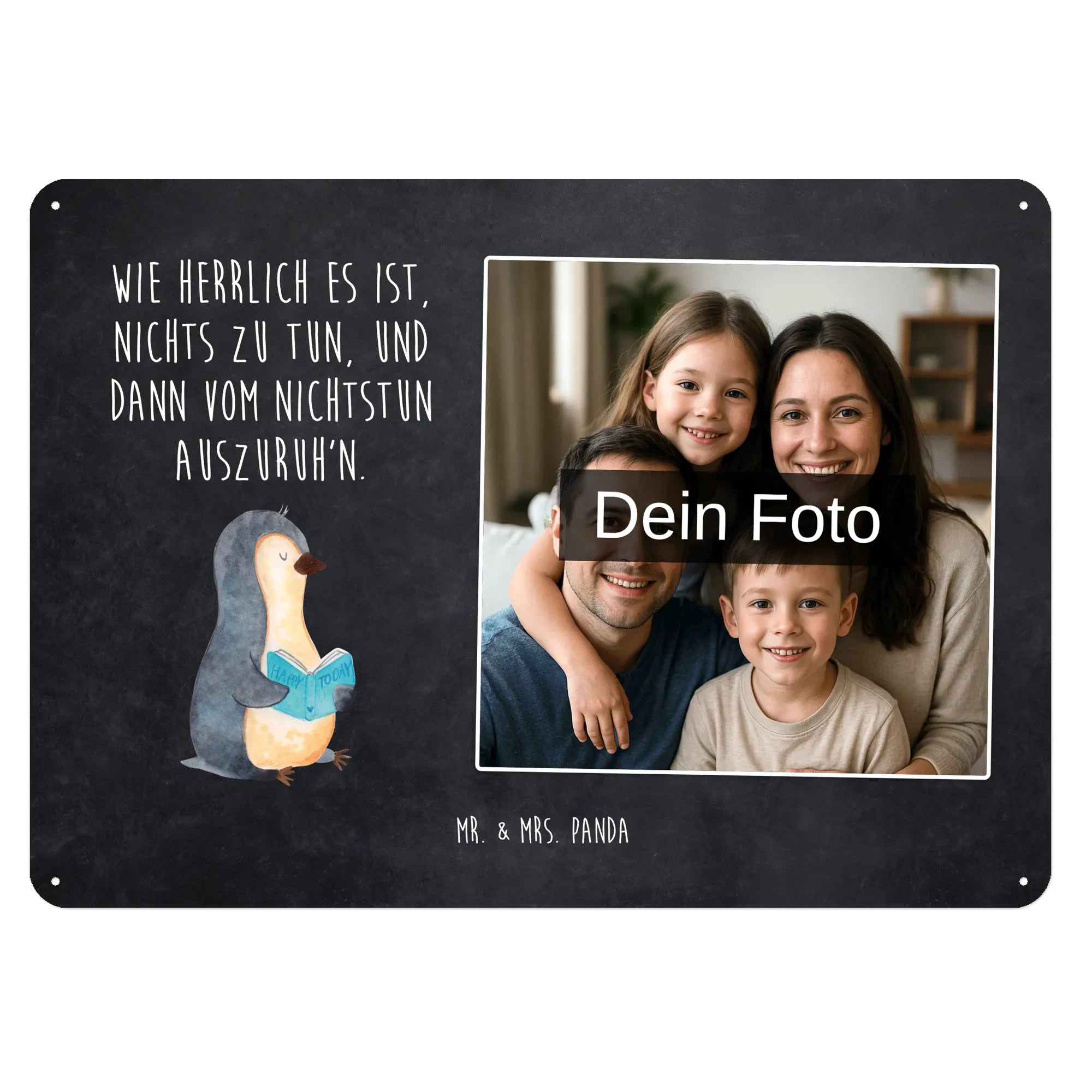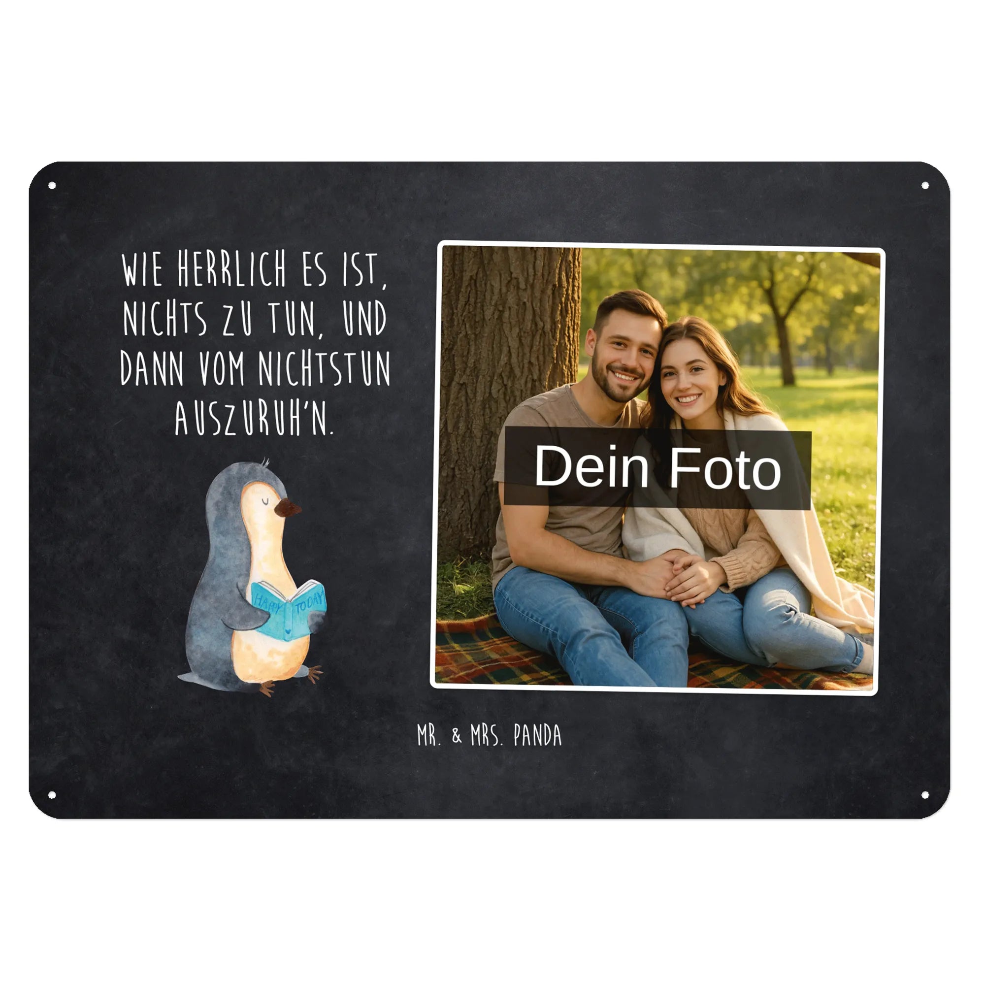 Spersonalizowany metalowy szyld ze zdjęciem pingwin książka - DIN A6 - lodowoniebieski