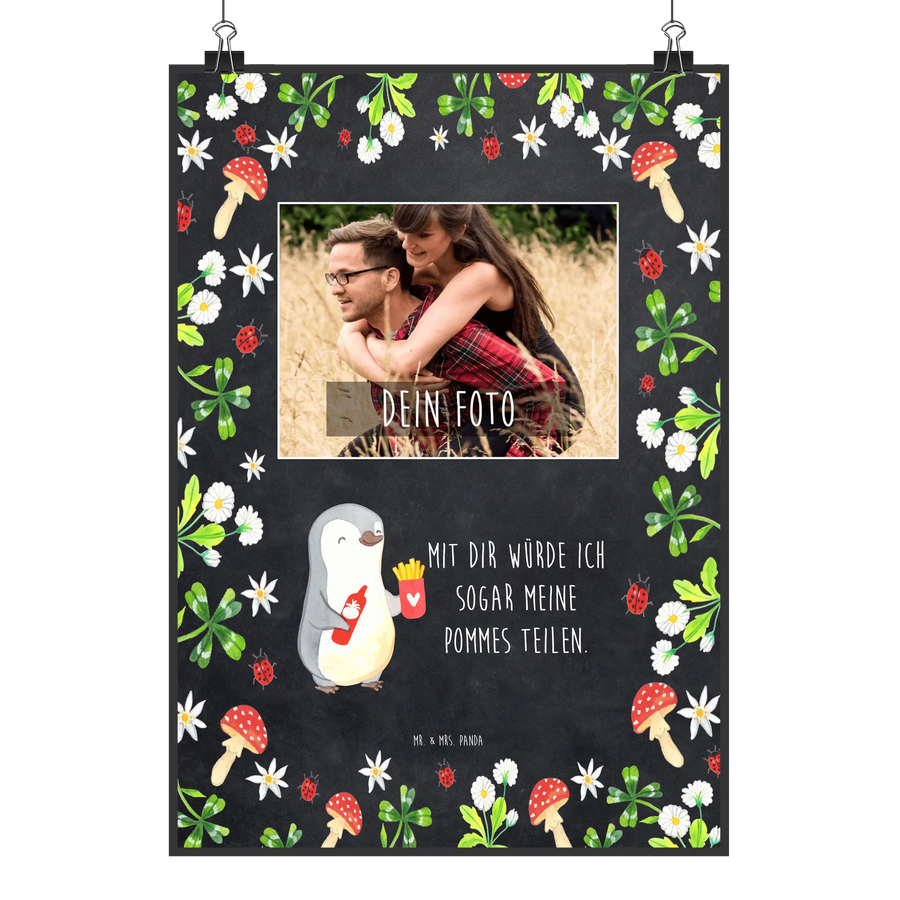 Das personalisierte Foto Poster "Pinguin Pommes" von Mr. & Mrs. Panda ist das perfekte Geschenk für alle, die ihre Liebe zelebrieren möchten. ❤ Egal ob zum Valentinstag, zum Jahrestag oder ganz einfach, um dem Partner eine Freude zu machen – dieses Poster bringt ein Lächeln auf jedes Gesicht.