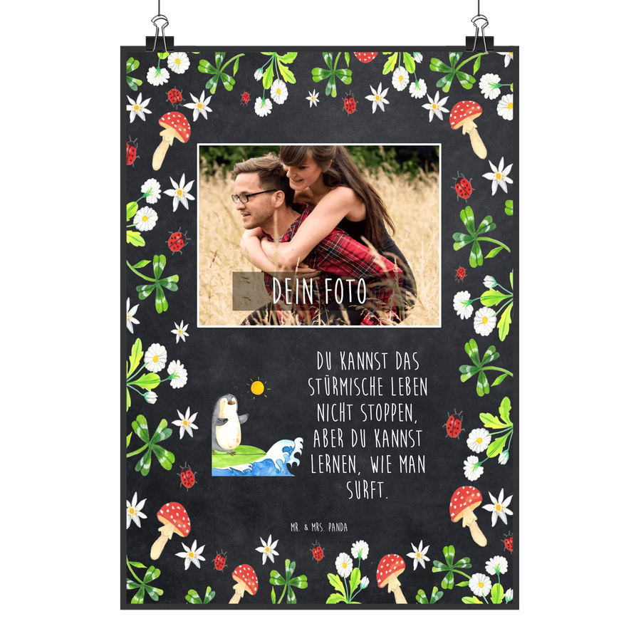 Ein wunderschönes und edles personalisiertes Foto Poster von Mr. & Mrs. Panda, das jeden Raum zum Strahlen bringt! Das Motiv des Pinguin Surfers ist perfekt für alle, die die Wellen lieben und eine Portion Lebensfreude in ihr Zuhause bringen möchten. Dieses Poster ist nicht nur ein echter Hingucker, sondern auch eine tolle Möglichkeit, die eigene Persönlichkeit auszudrücken.