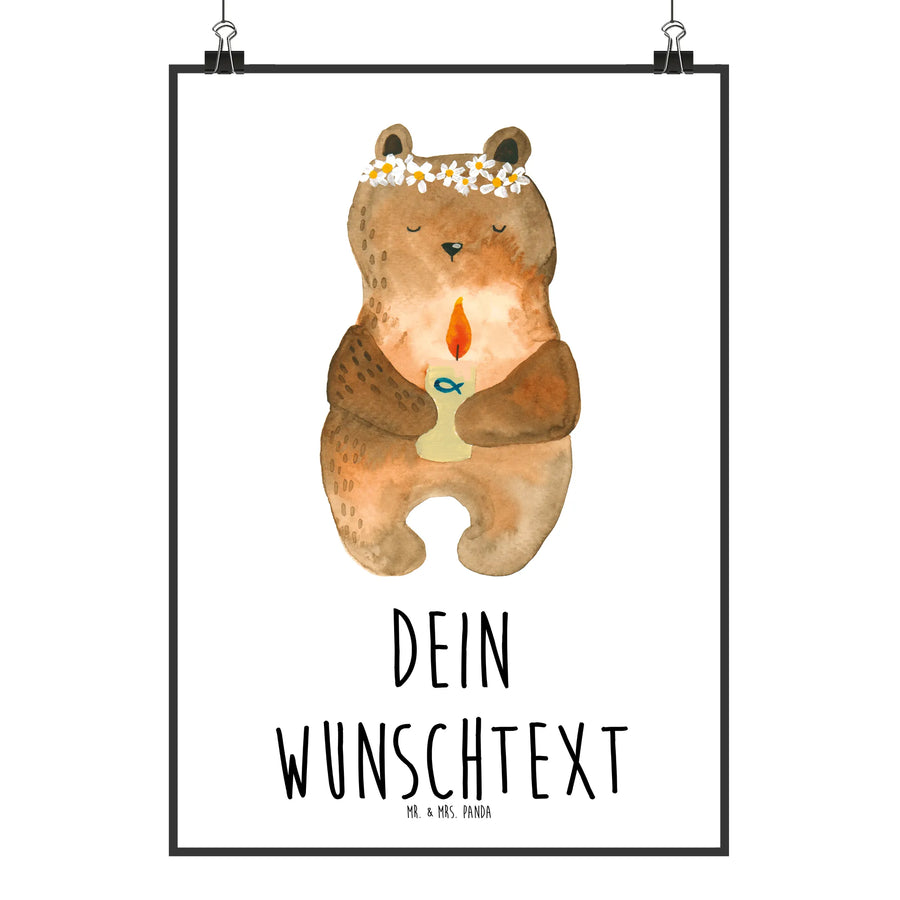 Das personalisierte Poster mit dem süßen Kommunion-Bär von Mr. & Mrs. Panda ist das ideale Geschenk für alle, die eine Kommunion oder ein besonderes religiöses Ereignis feiern. Dieses wunderschöne und edle personalisierte Poster wird mit viel Liebe zum Detail auf hochwertigem, 200 Gramm starkem Papier gedruckt.