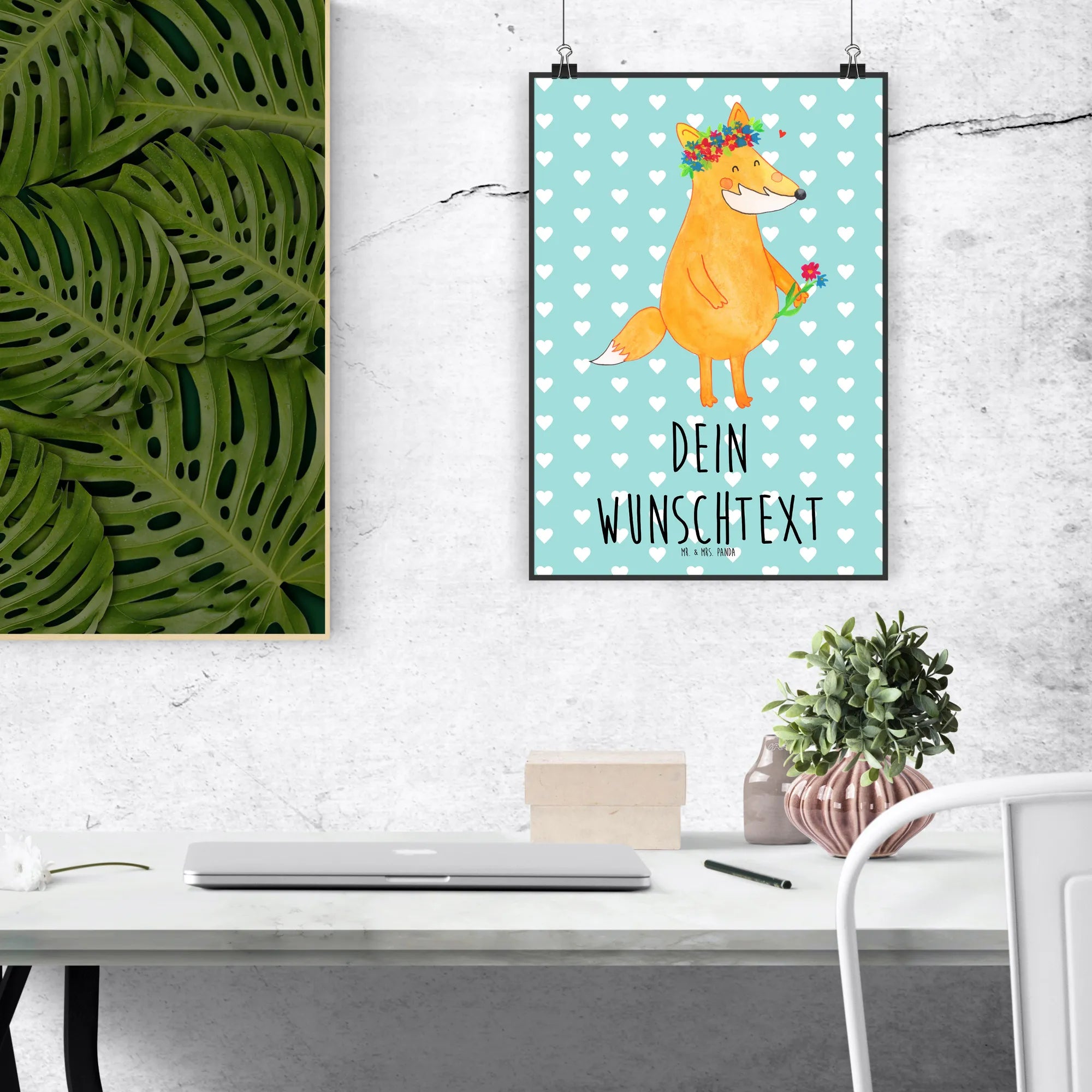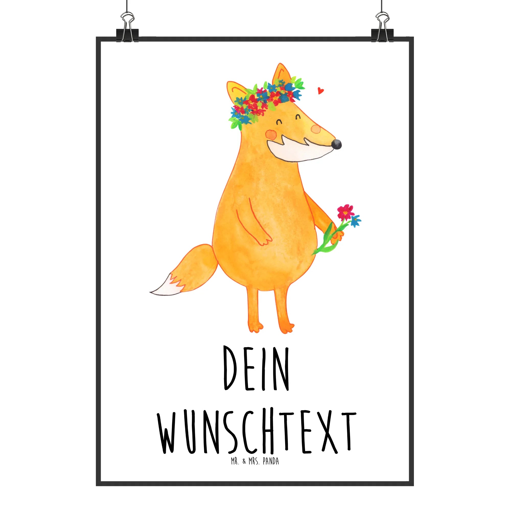 Das personalisierte Poster mit dem liebevollen Motiv 'Fuchs Blumenliebe' von Mr. & Mrs. Panda ist das perfekte Geschenk für Freunde, Familie oder sogar für dich selbst!