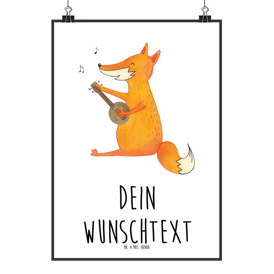 Entdecke das personalisierte Poster mit dem bezaubernden Fuchs, der Gitarre spielt! Dieses einzigartige Wandbild von Mr. & Mrs. Panda ist die perfekte Dekoration für dein Zuhause und bringt einen Hauch von Musik und Freude in jeden Raum.