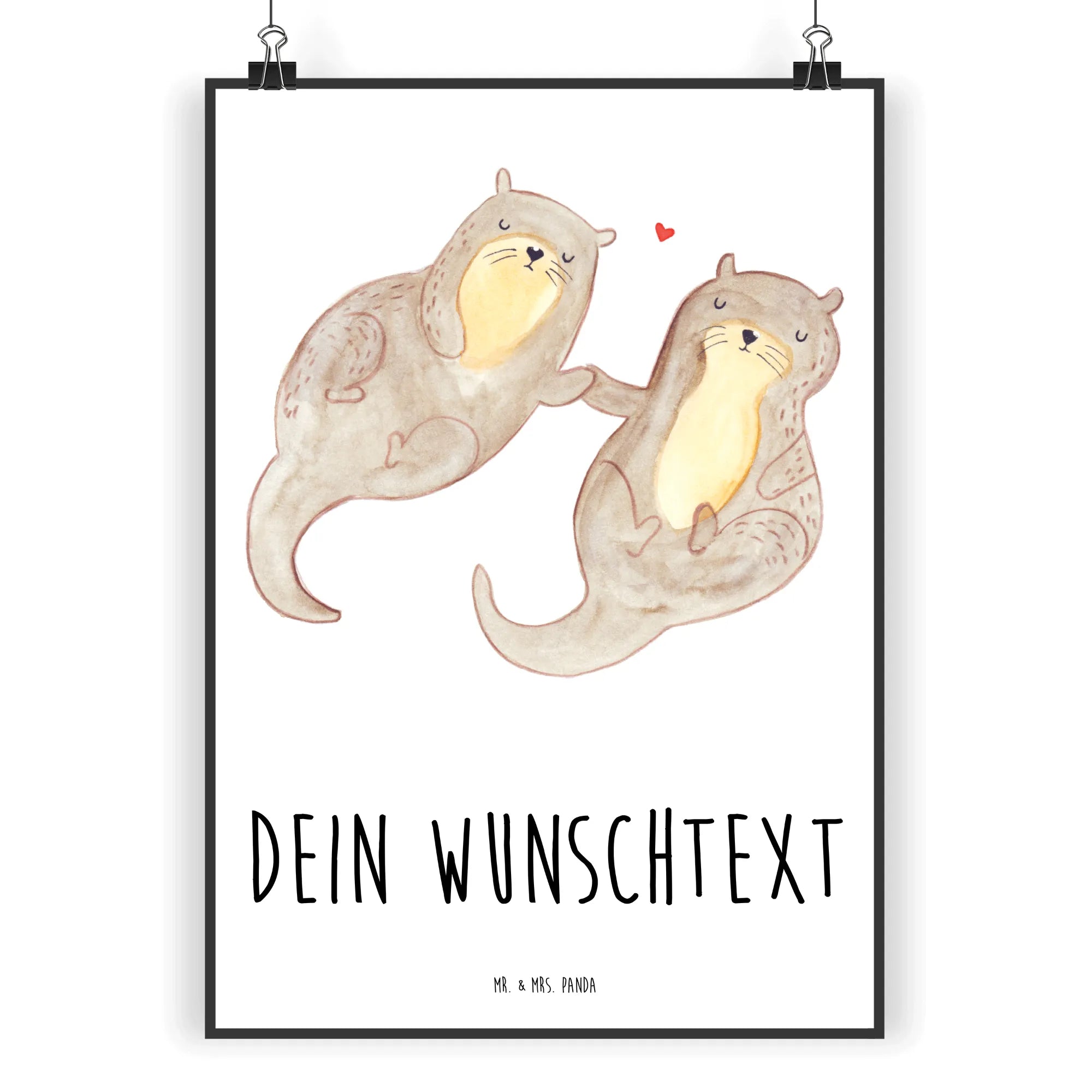Entdecke das perfekte personalisierte Poster mit dem süßen Motiv "Otter händchenhaltend" aus der Otter-Kollektion von Mr. & Mrs. Panda! Dieses wunderschöne und edle Wandposter bringt nicht nur Farbe in dein Zuhause, sondern auch eine ganz besondere Botschaft.