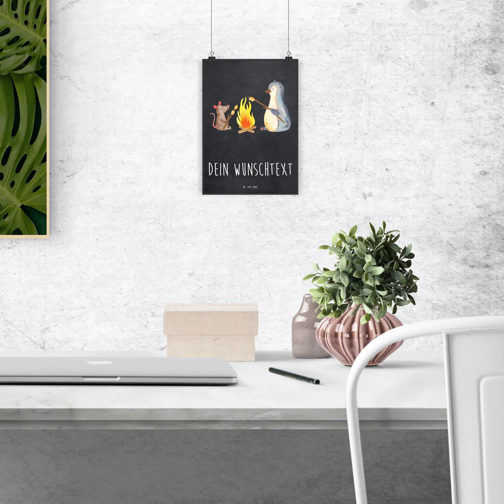 Das personalisierte Poster mit dem süßen Pinguin Lagerfeuer Motiv von Mr. & Mrs. Panda ist der perfekte Geschenkartikel für jede Gelegenheit. Egal ob zum Geburtstag, als liebevolle Überraschung für gute Freunde oder als niedliche Wanddeko für das Kinderzimmer – dieses Poster bringt Freude in jeden Raum. Es zeigt einen niedlichen Pinguin, der zusammen mit einer kleinen Maus am Lagerfeuer sitzt und köstliche Marshmallows grillt. Die sanften Farben und liebevollen Details verwandeln jede Wand in ein einzigartiges Kunstwerk.