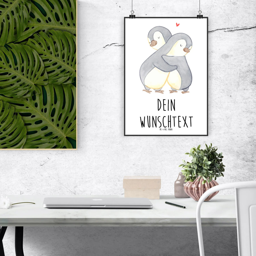 Personalisiertes Poster Pinguine Kuscheln - DIN A0 - Weiß