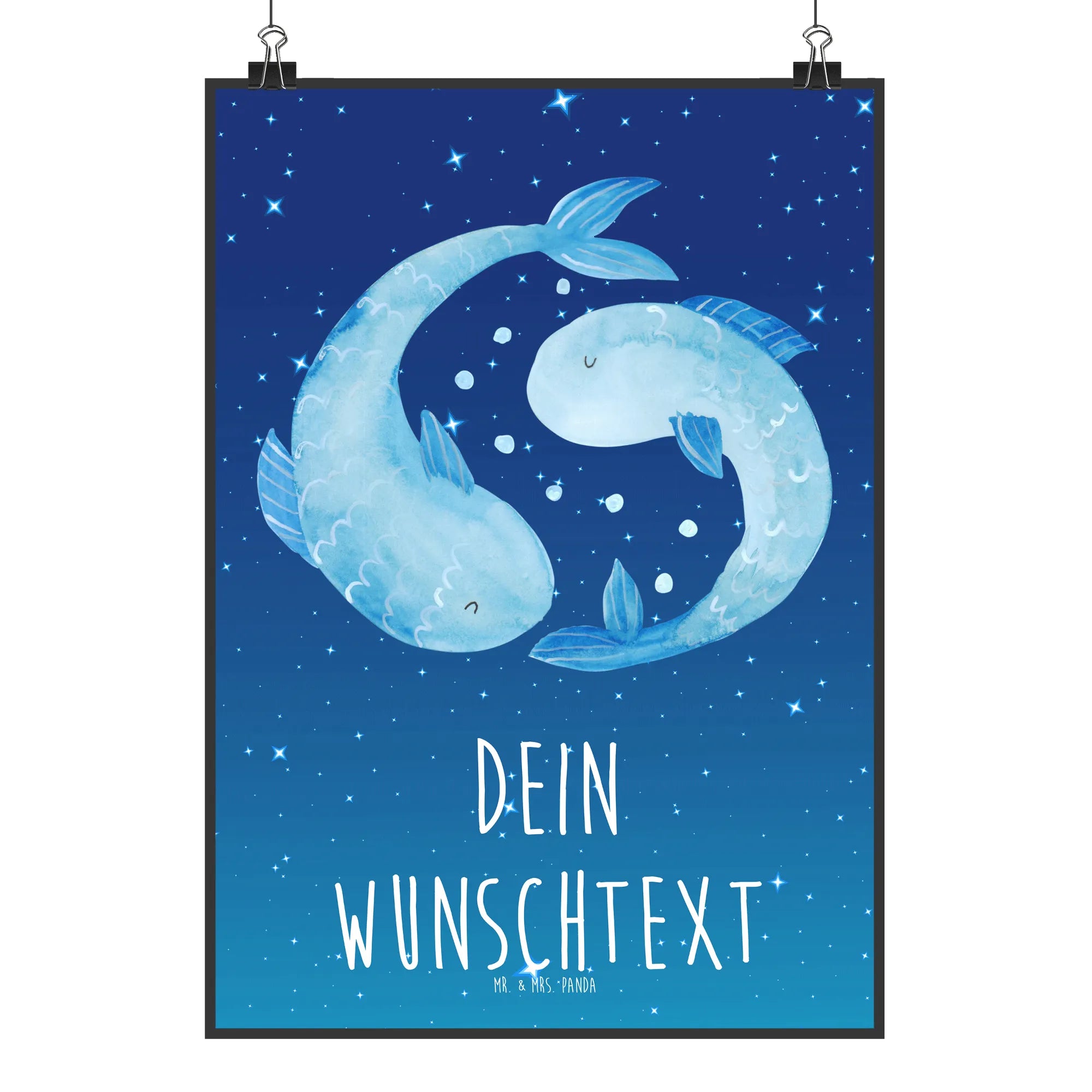 Überrasche deine Liebsten mit einem einzigartigen personalisierten Poster von Mr. & Mrs. Panda! Dieses wunderschöne Wandposter zeigt das Sternzeichen Fische, das für seine verträumte und empathische Natur bekannt ist.