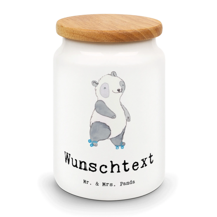 Spersonalizowany pojemnik na zapasy Panda Jazda na rolkach