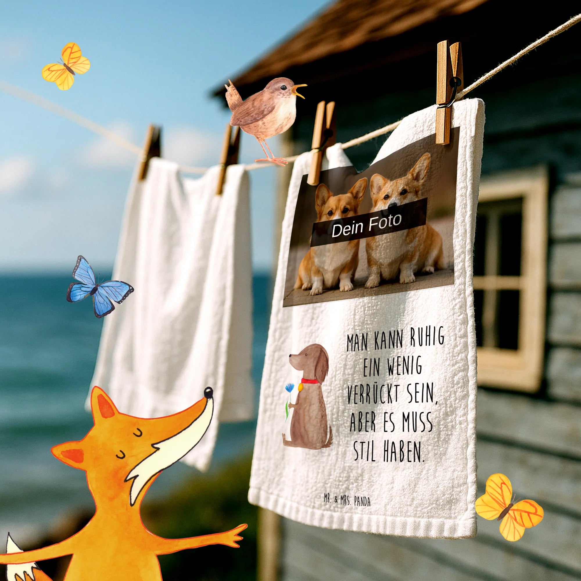 Personalisiertes Foto Gästehandtuch Hund Blume