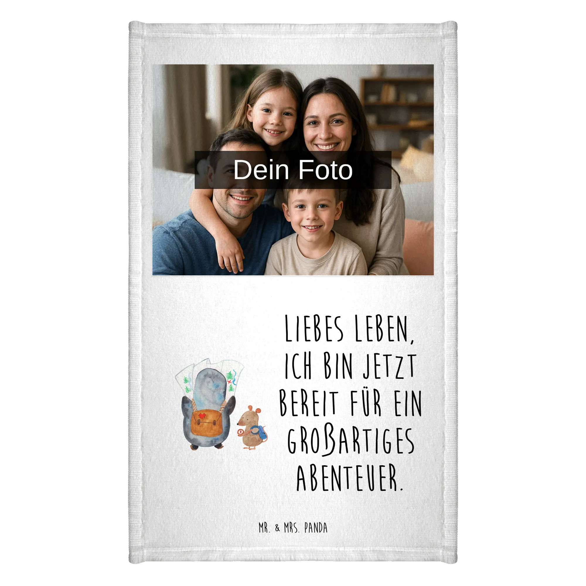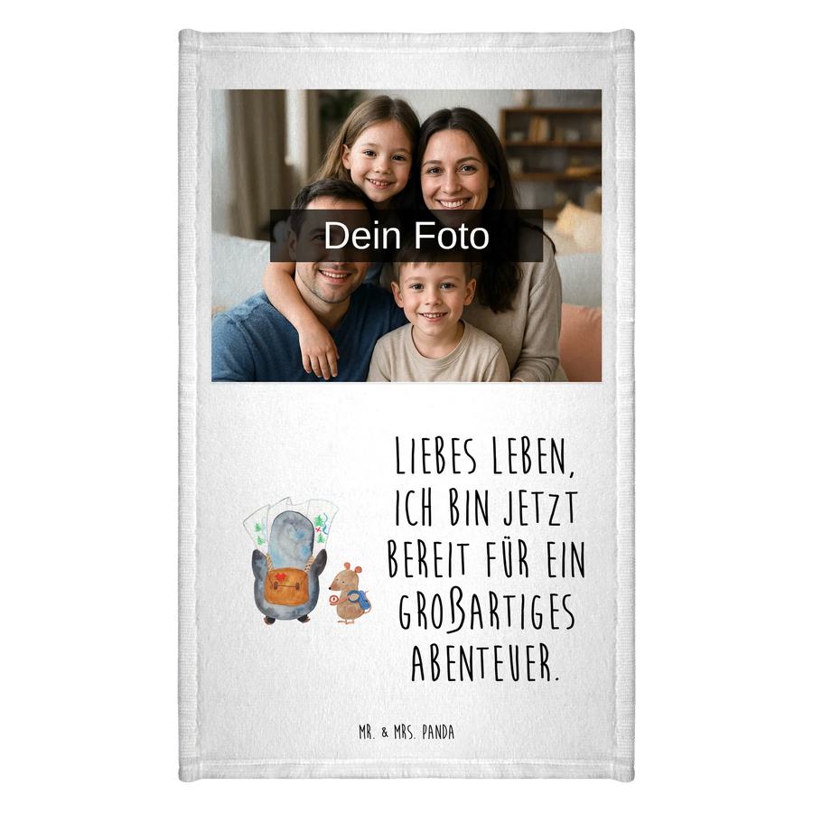 Personalisiertes Foto Gästehandtuch Pinguin & Maus Wanderer