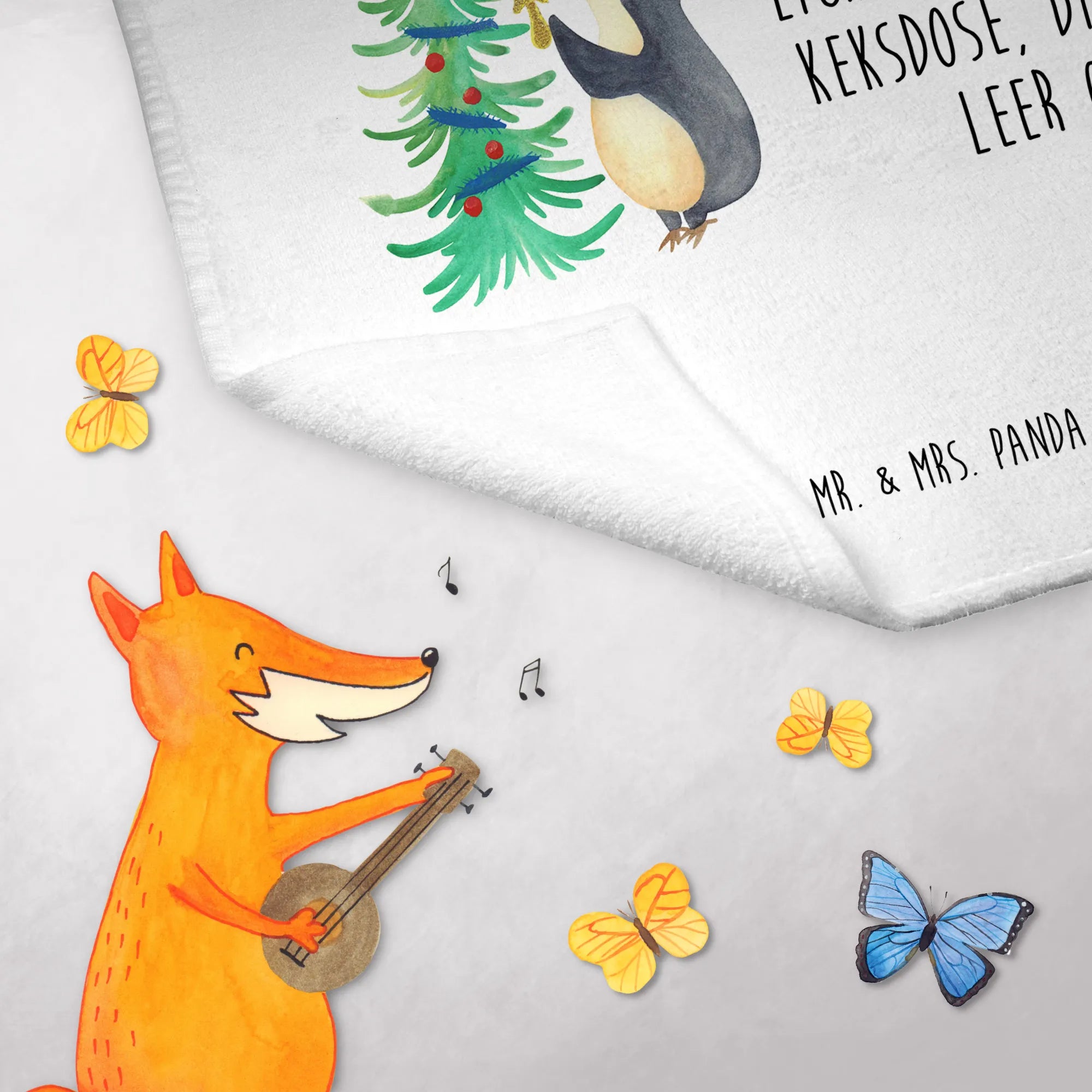 Personalisiertes Foto Gästehandtuch Pinguin Weihnachtsbaum