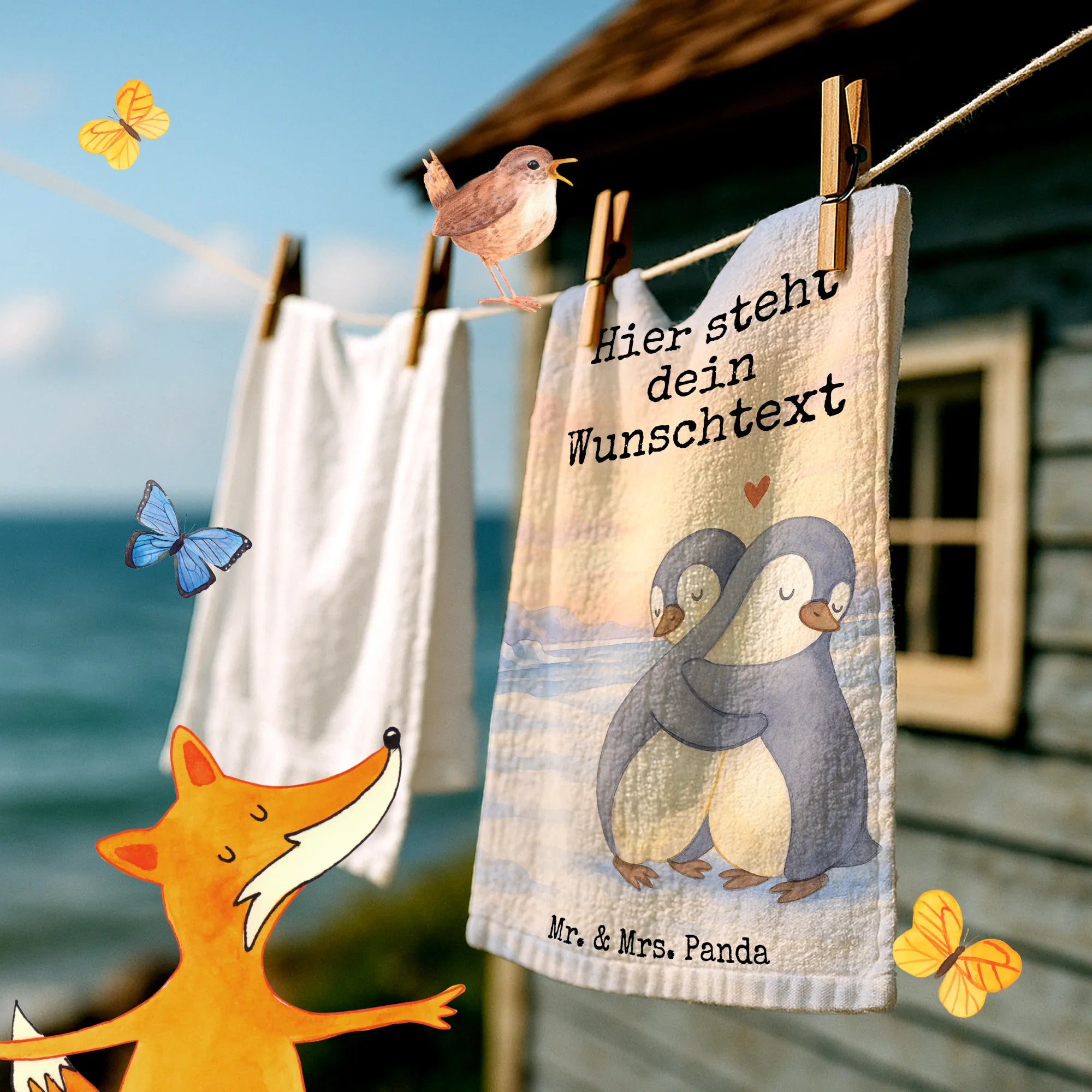 Personalisiertes Gästehandtuch Pinguine Kuscheln Design