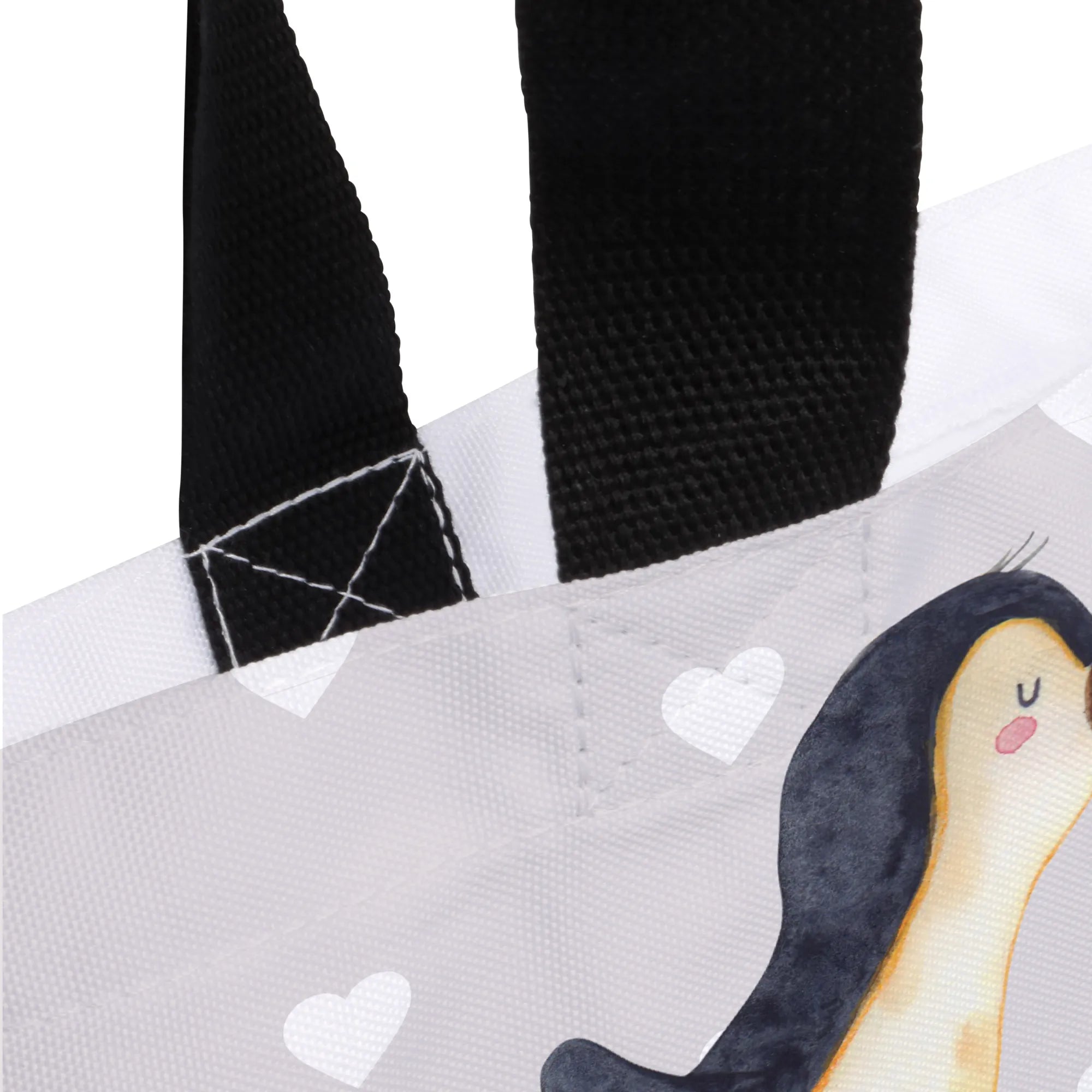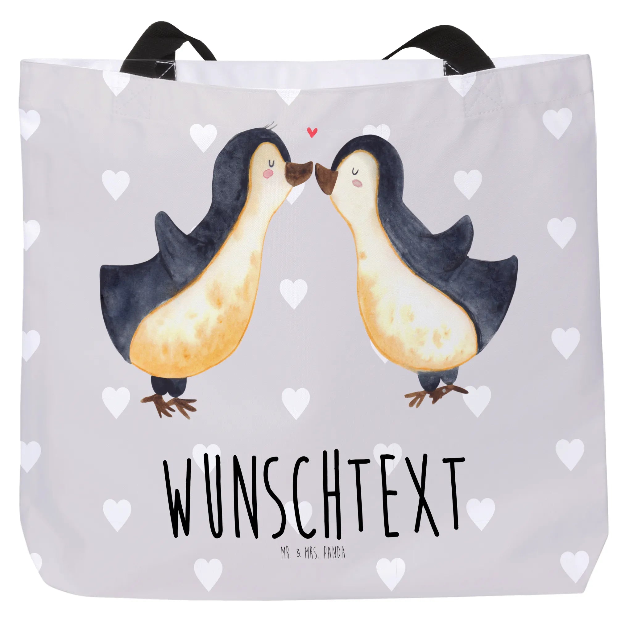 Suchst du das perfekte Geschenk für deinen Lieblingsmenschen? Dann ist der personalisierte Shopper Pinguin Liebe von Mr. & Mrs. Panda genau das Richtige! Diese zauberhafte Tasche ist mehr als nur ein praktisches Accessoire – sie ist ein Liebesbeweis in Form von einem wunderschönen gestalteten Motiv. Der Shopper ist hochwertig bedruckt mit einem süßen Pinguinpaar, das sich innig umarmt und mit geschlossenen Augen sanft aneinander schnäbelt. Über ihnen schwebt ein kleines Herz, das die Liebe zwischen den beiden symbolisiert. Die trendigen Farben in warmen Gelbtönen und beruhigenden Blautönen verleihen der Tasche ein freundliches und einladendes Aussehen.