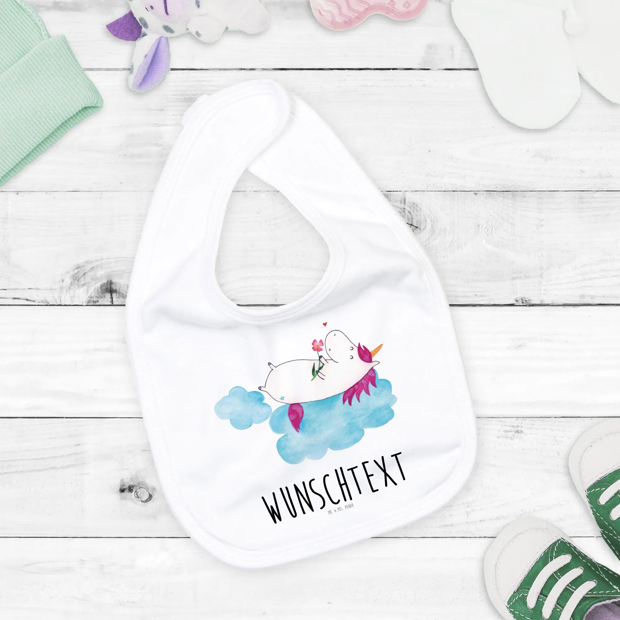 Personalisiertes Babylätzchen Einhorn verliebt auf Wolke