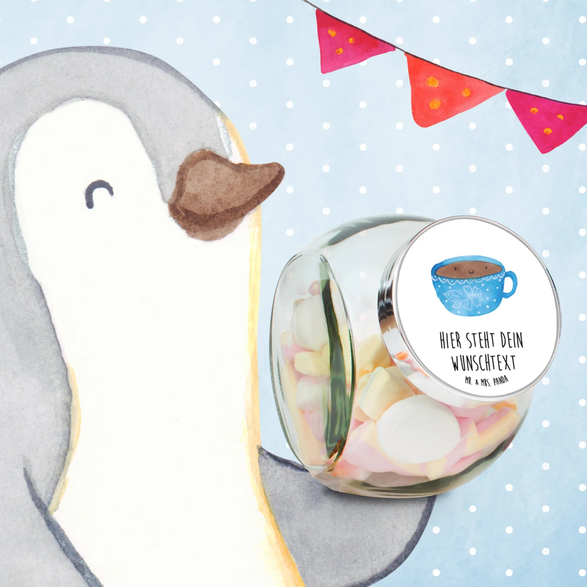 Das personalisierte Bonbonglas mit dem Motiv Kaffee Tasse aus der Sammlung Small World von Mr. & Mrs. Panda ist das perfekte Geschenk für alle Kaffeeliebhaber und Naschkatzen! Egal, ob du es für einen Freund, ein Familienmitglied oder dich selbst kaufst, dieses hochwertige Bonbonglas sorgt für Freude und gute Laune.