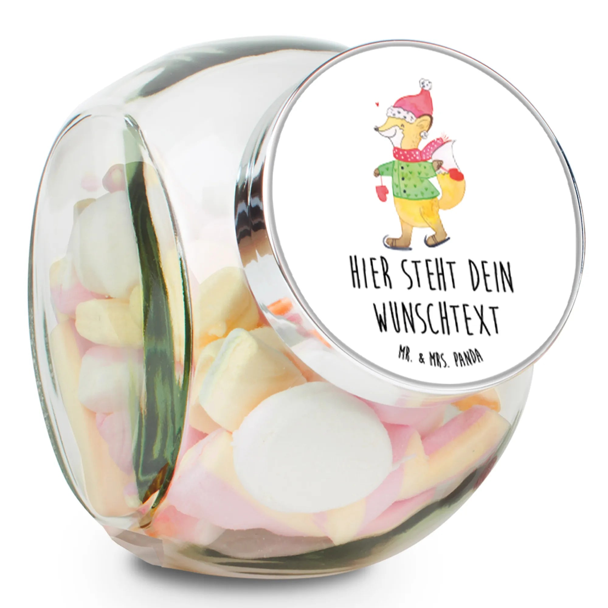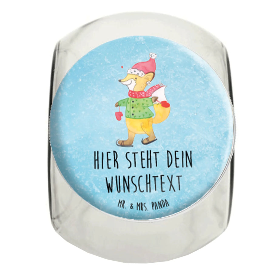 Entdecke das personalisierte Bonbonglas mit dem zauberhaften Fuchs im Schlittschuh-Design aus der Winter Kollektion von Mr. & Mrs. Panda!
