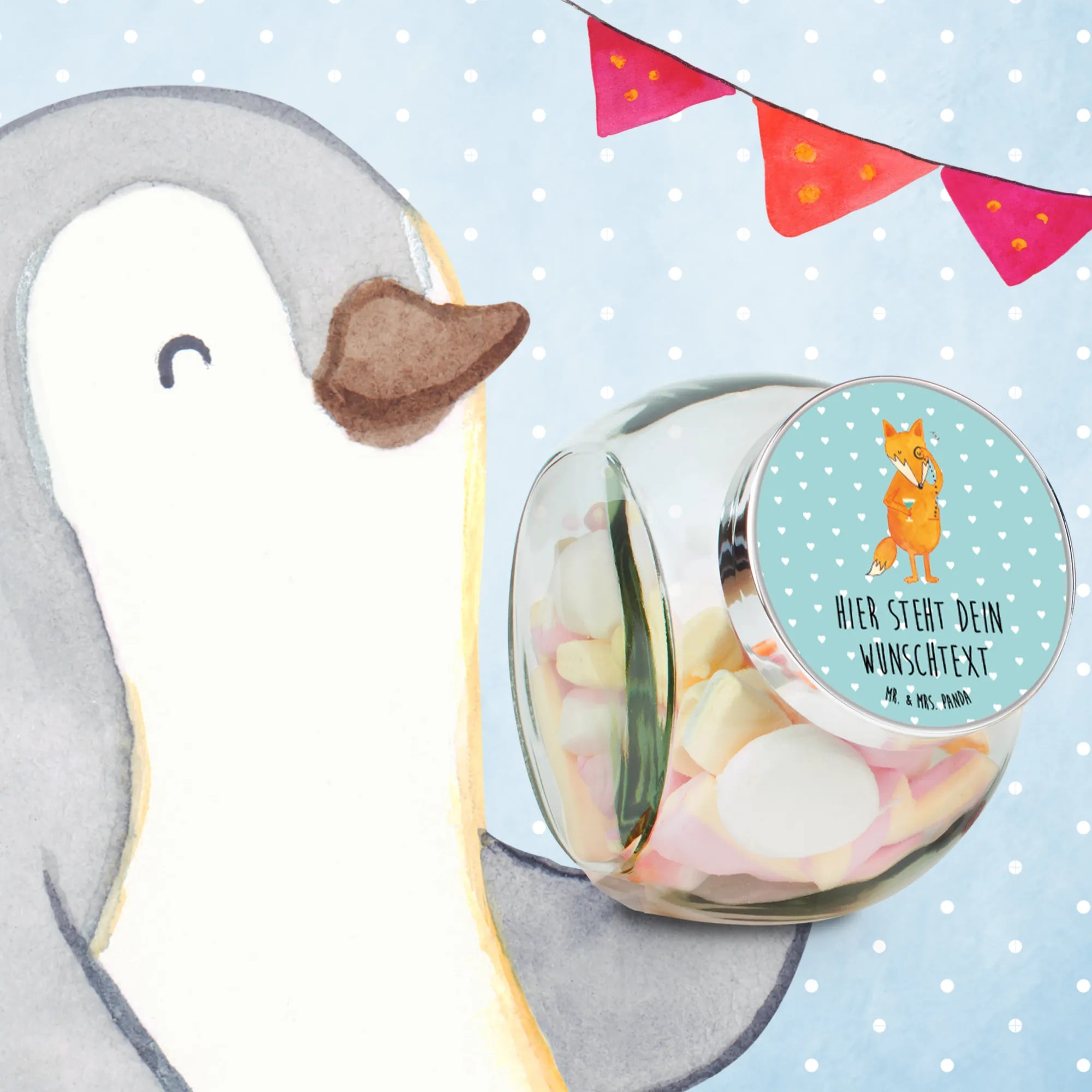 Entdecke das personalisierte Bonbonglas »Fuchs Lord« von Mr. & Mrs. Panda – ein wahrhaft einzigartiges Geschenk, das nicht nur hübsch aussieht, sondern auch praktisch ist! Dieses liebevoll gestaltete Glas ist die perfekte Aufbewahrungslösung für all deine Süßigkeiten, Kekse oder auch für Kaffee, Tee und Müsli.