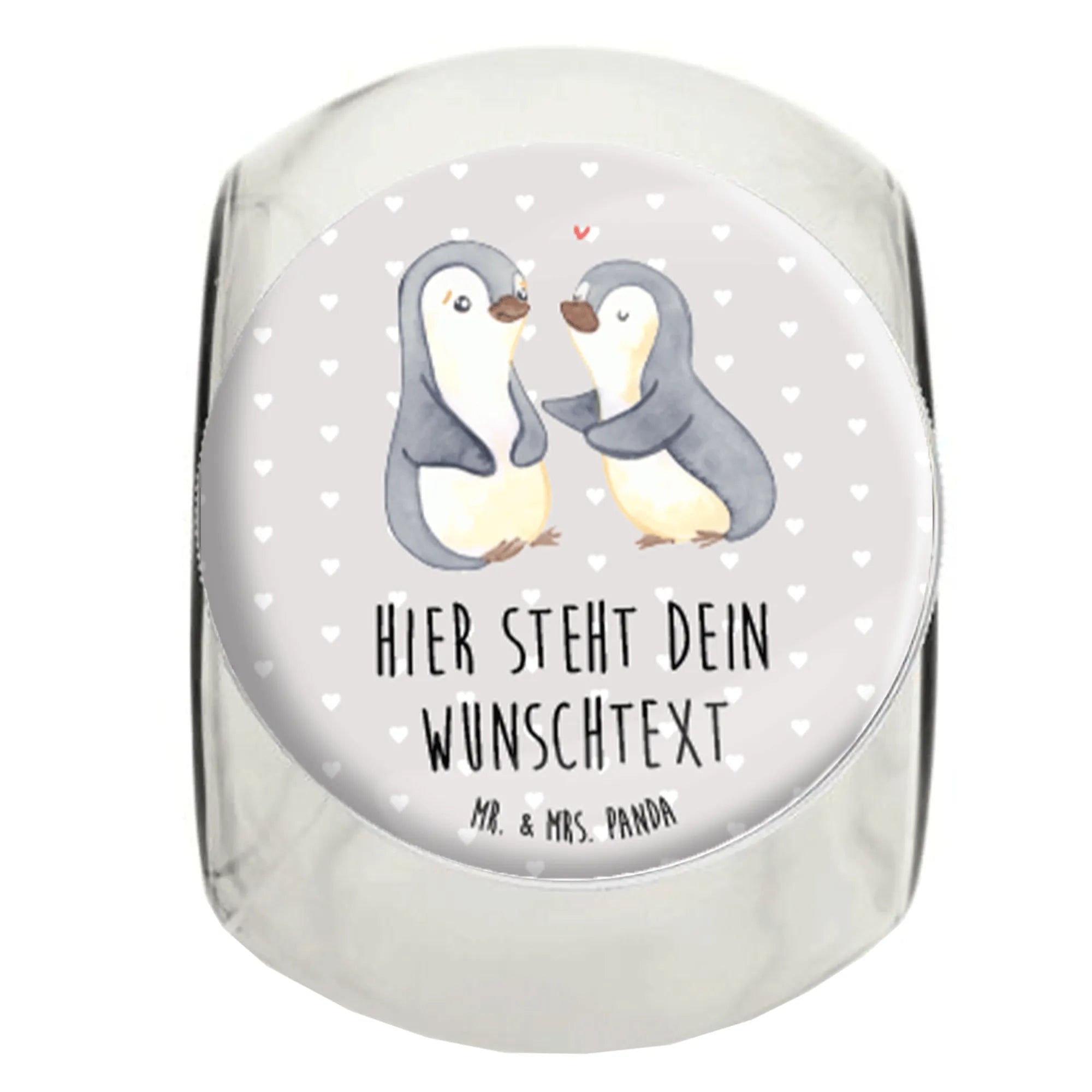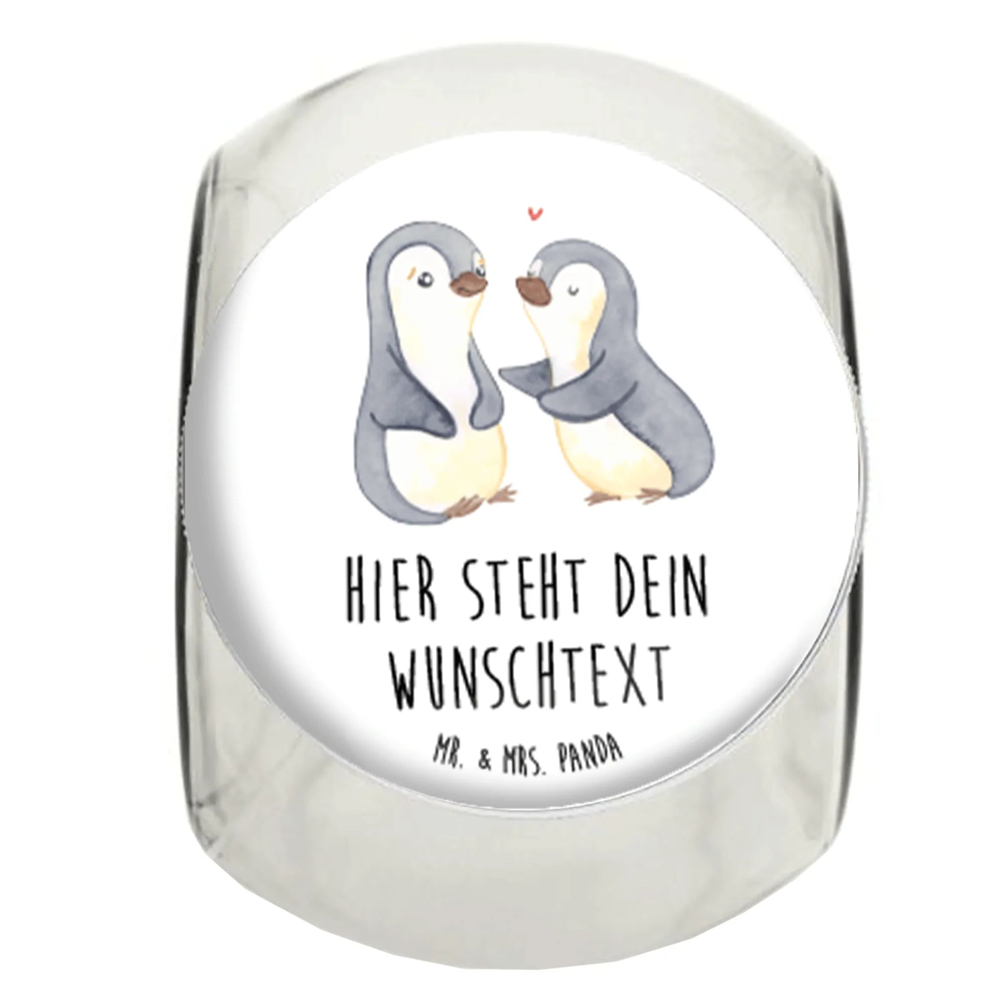 Das personalisierte Bonbonglas mit dem Motiv Pinguine trösten ist das perfekte Geschenk für all jene, die Liebe und Zuneigung auf eine ganz besondere Art zeigen möchten. Ob zum Valentinstag, Jahrestag, Geburtstag oder einfach nur als Liebesbeweis – dieses wunderschöne Vorratsglas von Mr. & Mrs. Panda überrascht und erfreut. Das Motiv zeigt zwei Pinguine, die sich zärtlich zuneigen und augenblicklich für eine wohlige Atmosphäre sorgen. Es symbolisiert Geborgenheit und Fürsorge, unverzichtbare Elemente in einer liebevollen Beziehung.