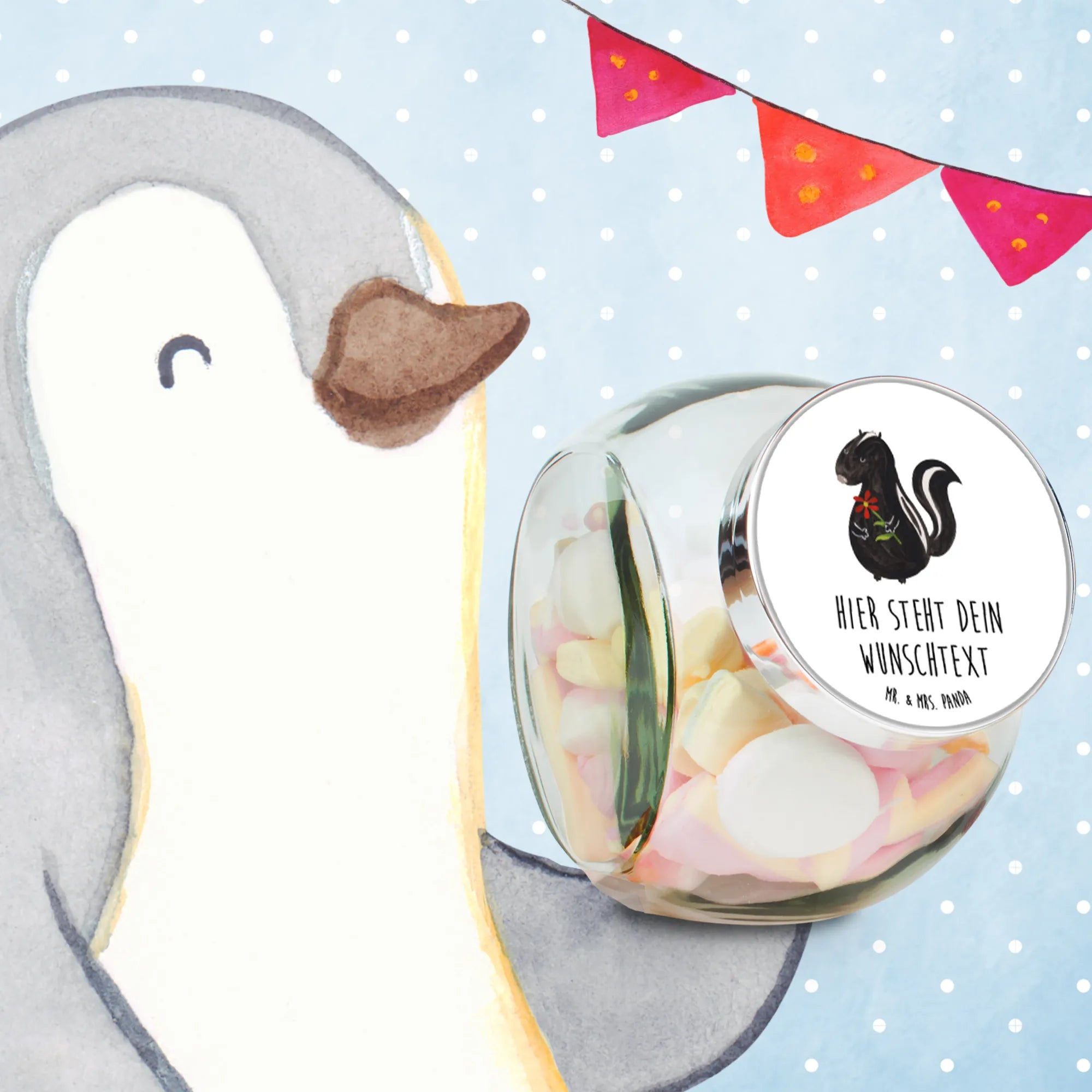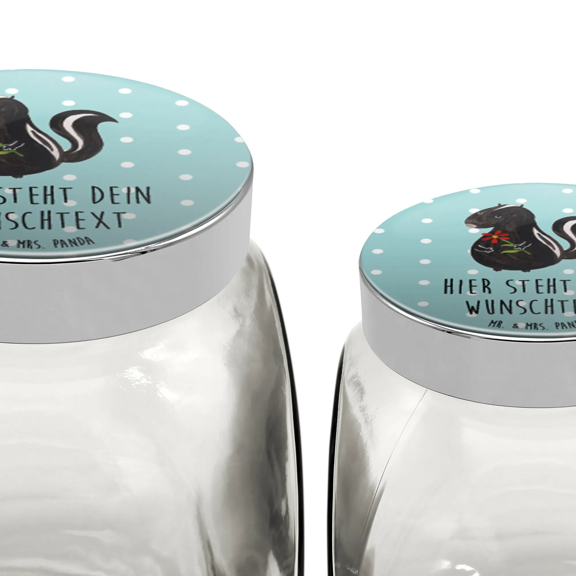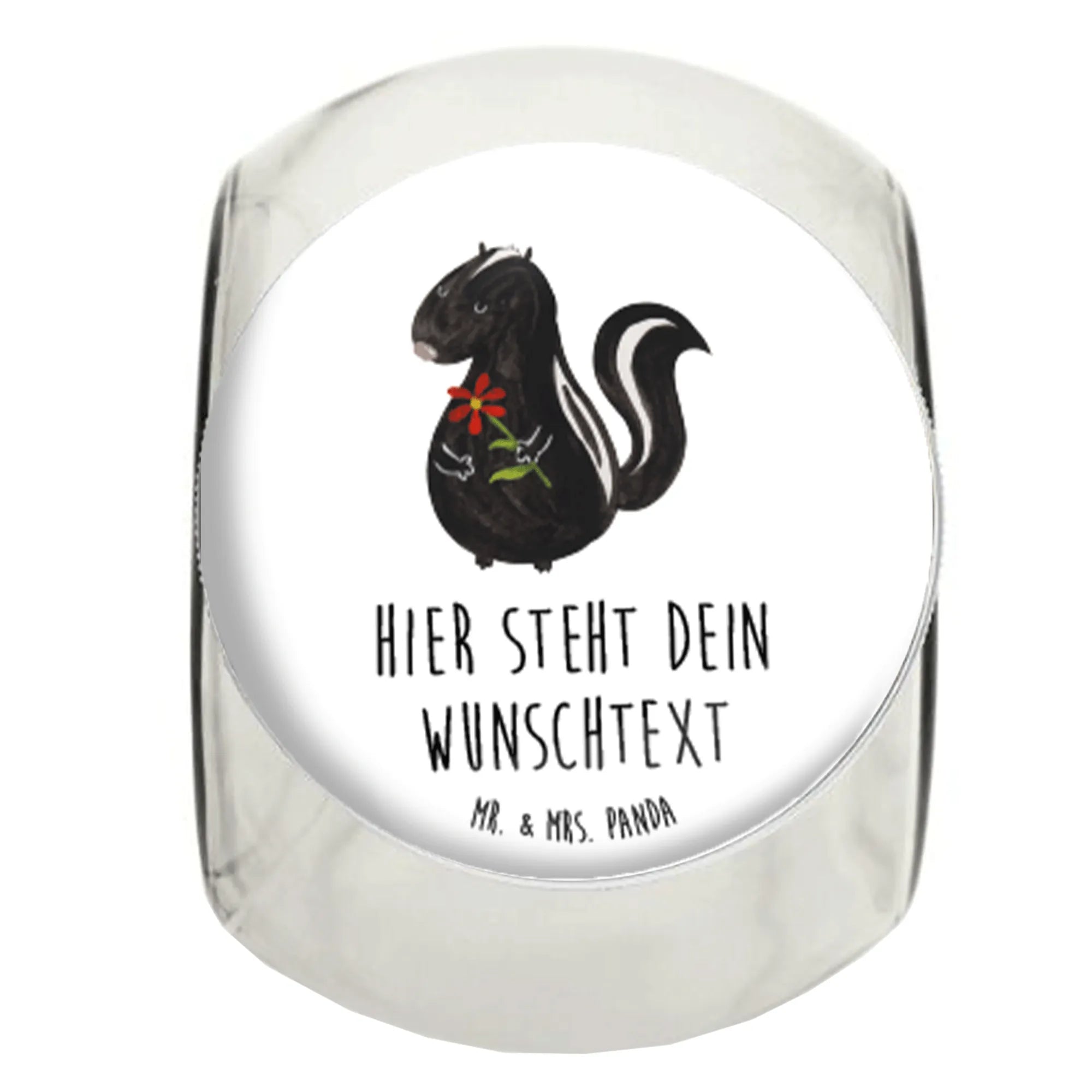 Das personalisierte Bonbonglas mit dem süßen Stinktier Blume Motiv aus der Stinktier Kollektion von Mr. & Mrs. Panda ist das perfekte Geschenk für alle, die es lieben, ihre kleinen Leckereien stilvoll und praktisch aufzubewahren. Ob für dich selbst oder als liebevolles Geschenk für deine Freunde, Familie oder Kollegen, dieses Bonbonglas ist ein wahrhaft einzigartiges Stück, das in keiner Küche fehlen darf.