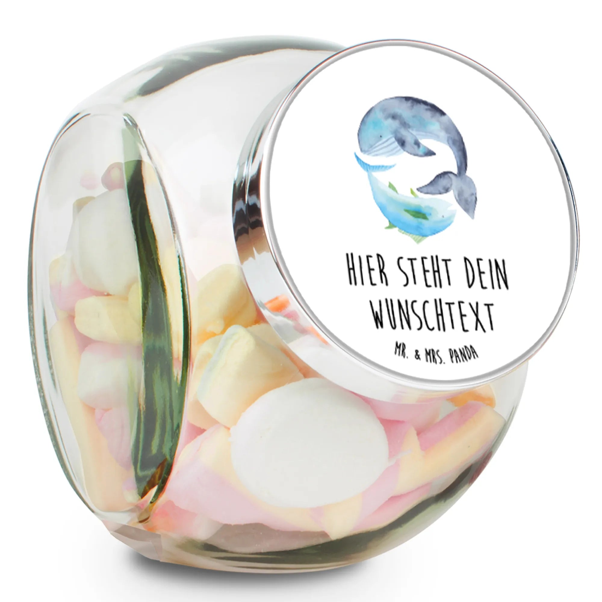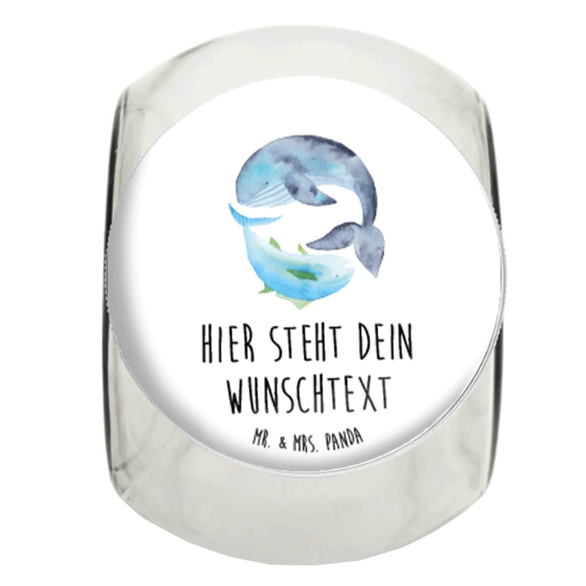 Das wunderschöne personalisierte Bonbonglas mit dem Motiv Walfisch & Thunfisch aus der Small World Kollektion von Mr. & Mrs. Panda ist das perfekte Geschenk für jeden Anlass.