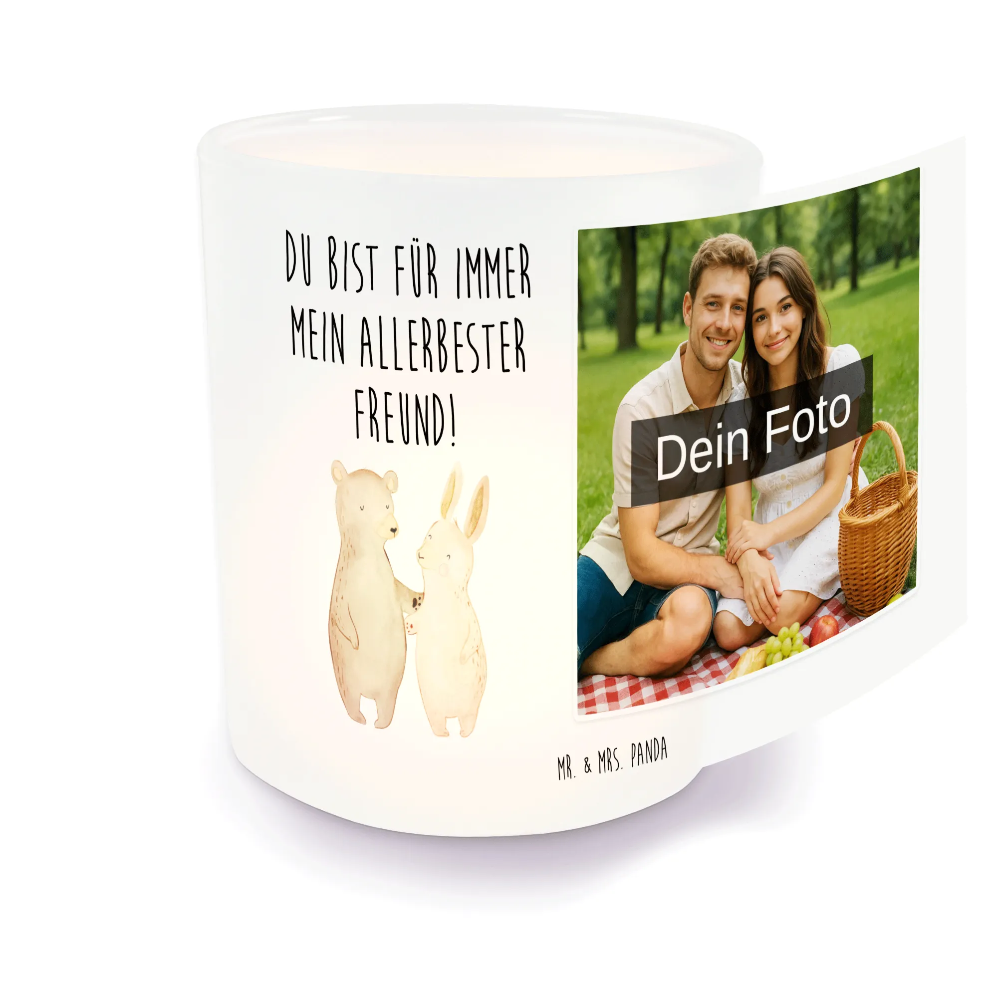 Personalisiertes Foto Windlicht Bär und Hase Umarmen