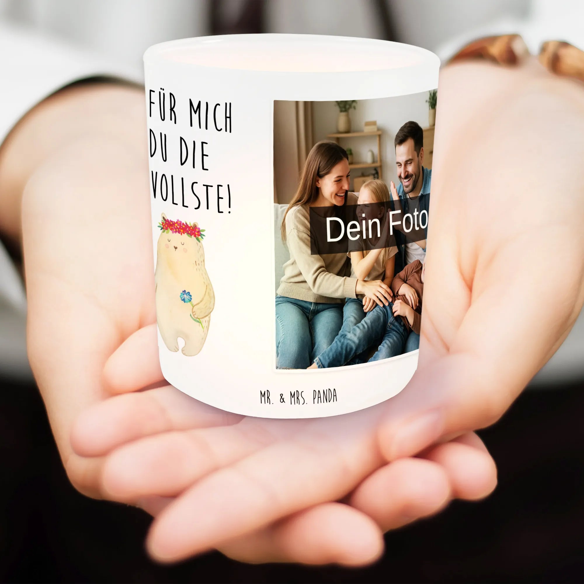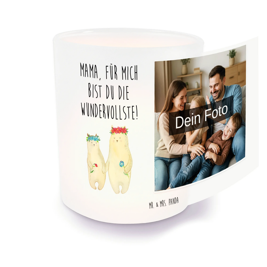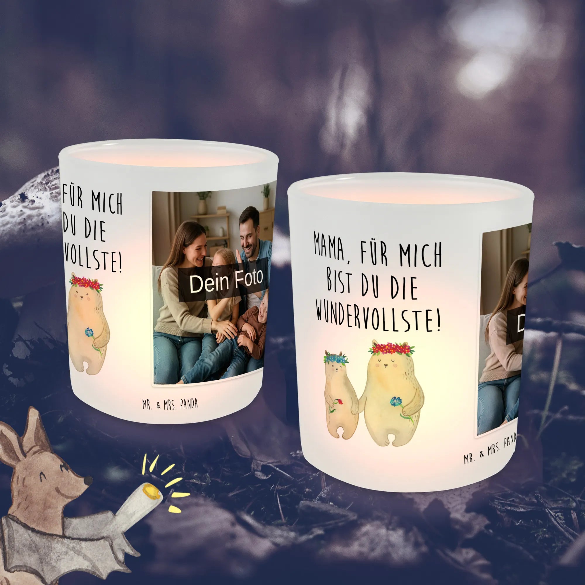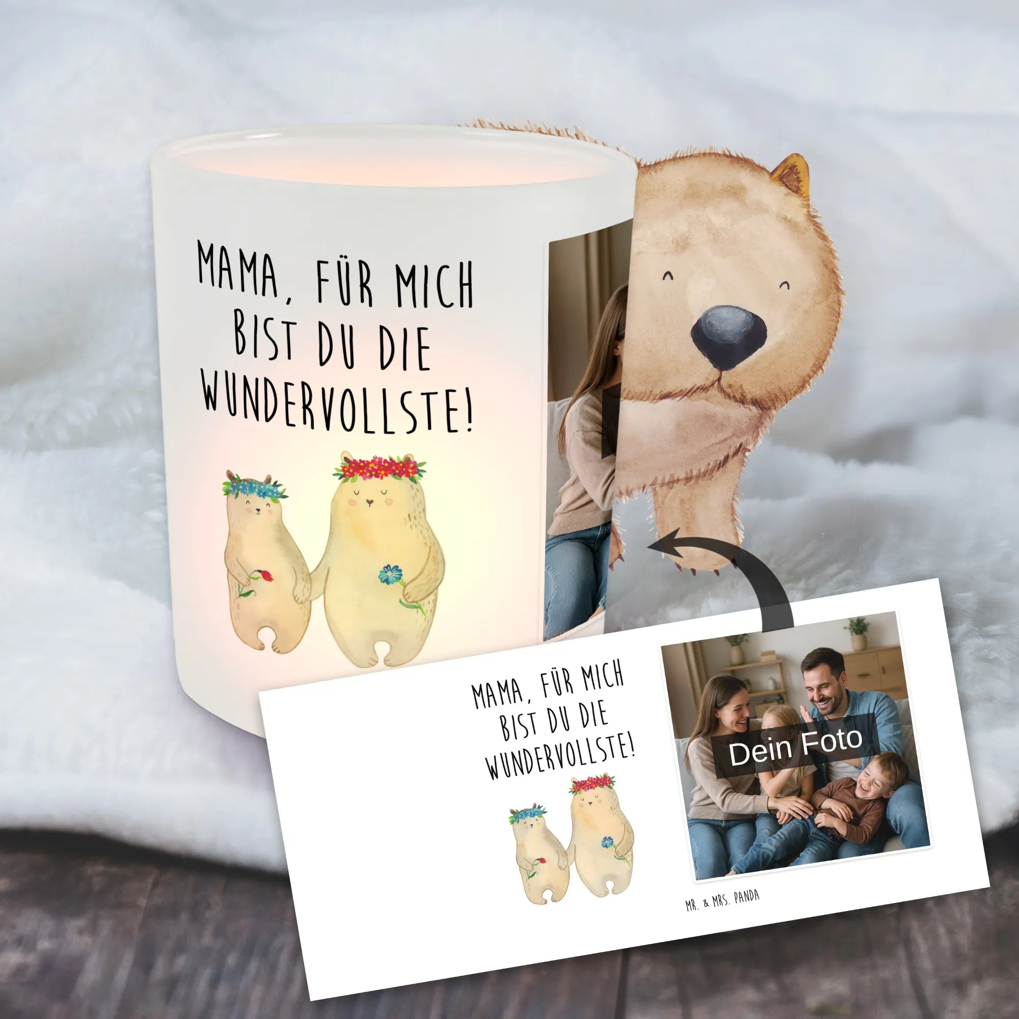 Personalisiertes Foto Windlicht Bären mit Blumenkranz