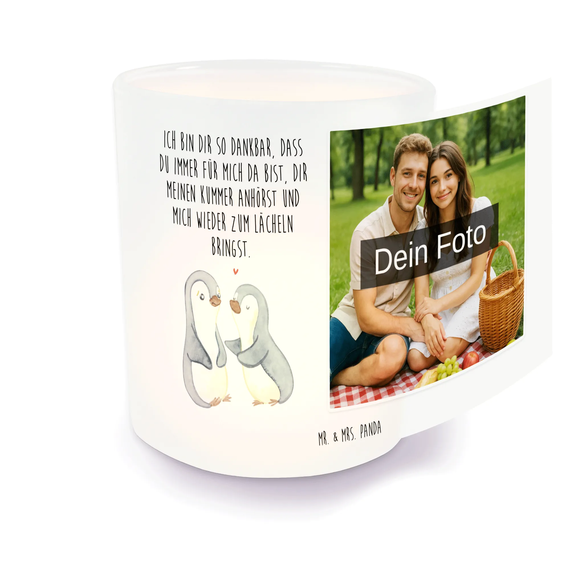 Personalisiertes Foto Windlicht Pinguine trösten