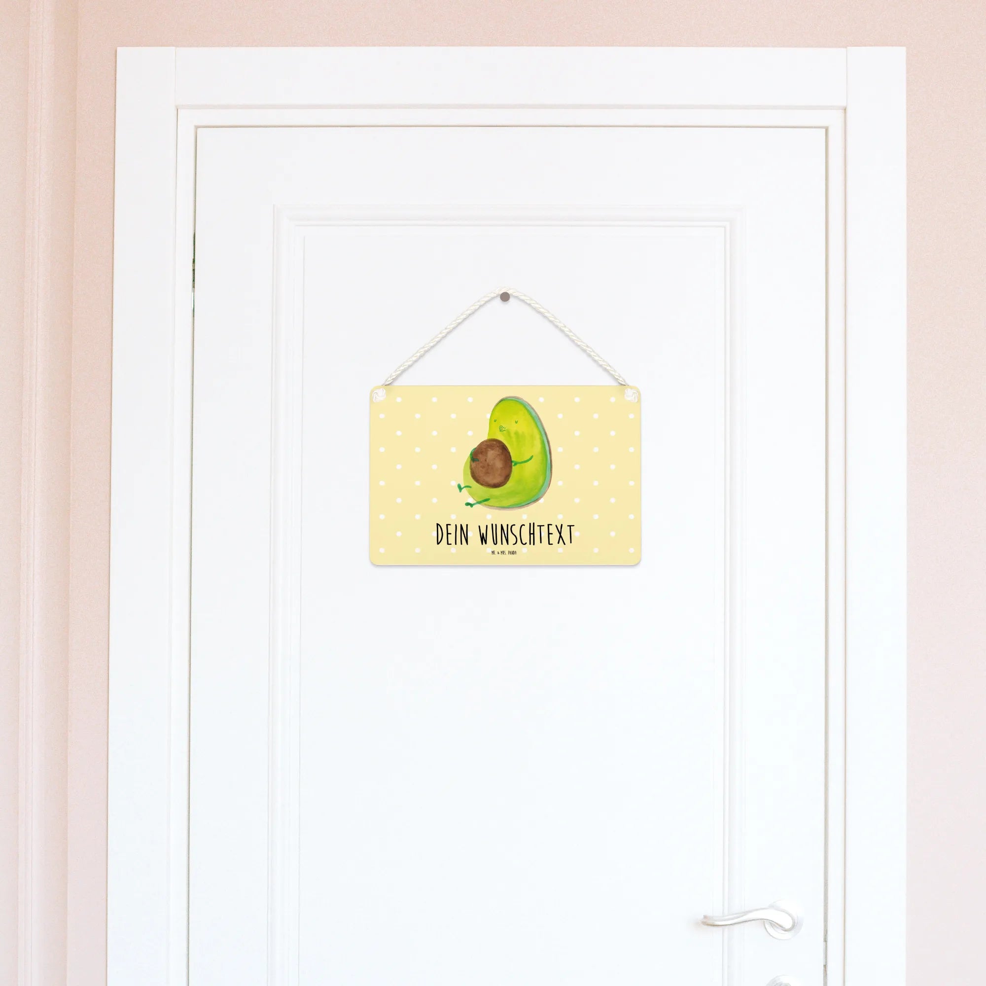 Personalisiertes Deko Schild Avocado pfeift - DIN A6 - Gelb Pastell