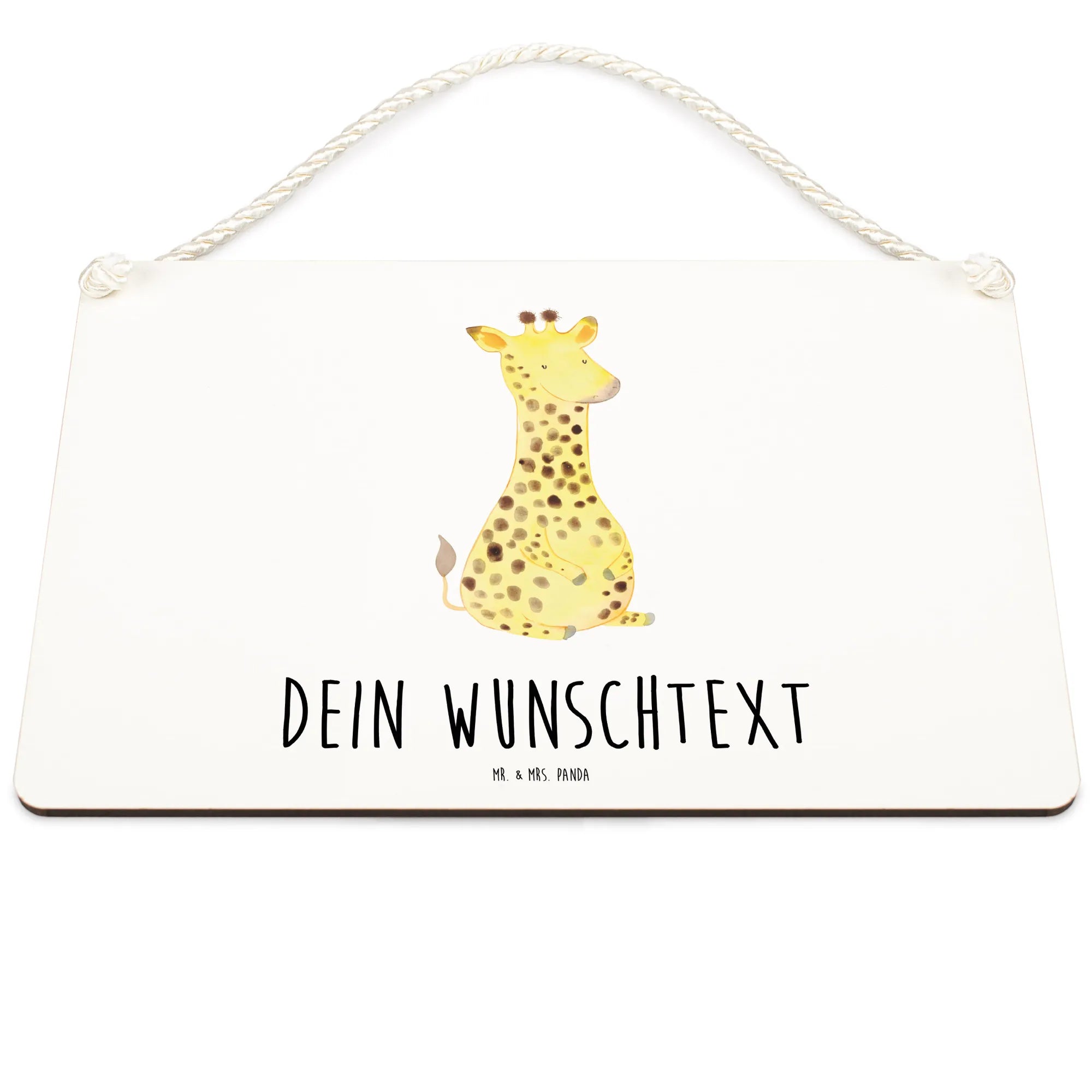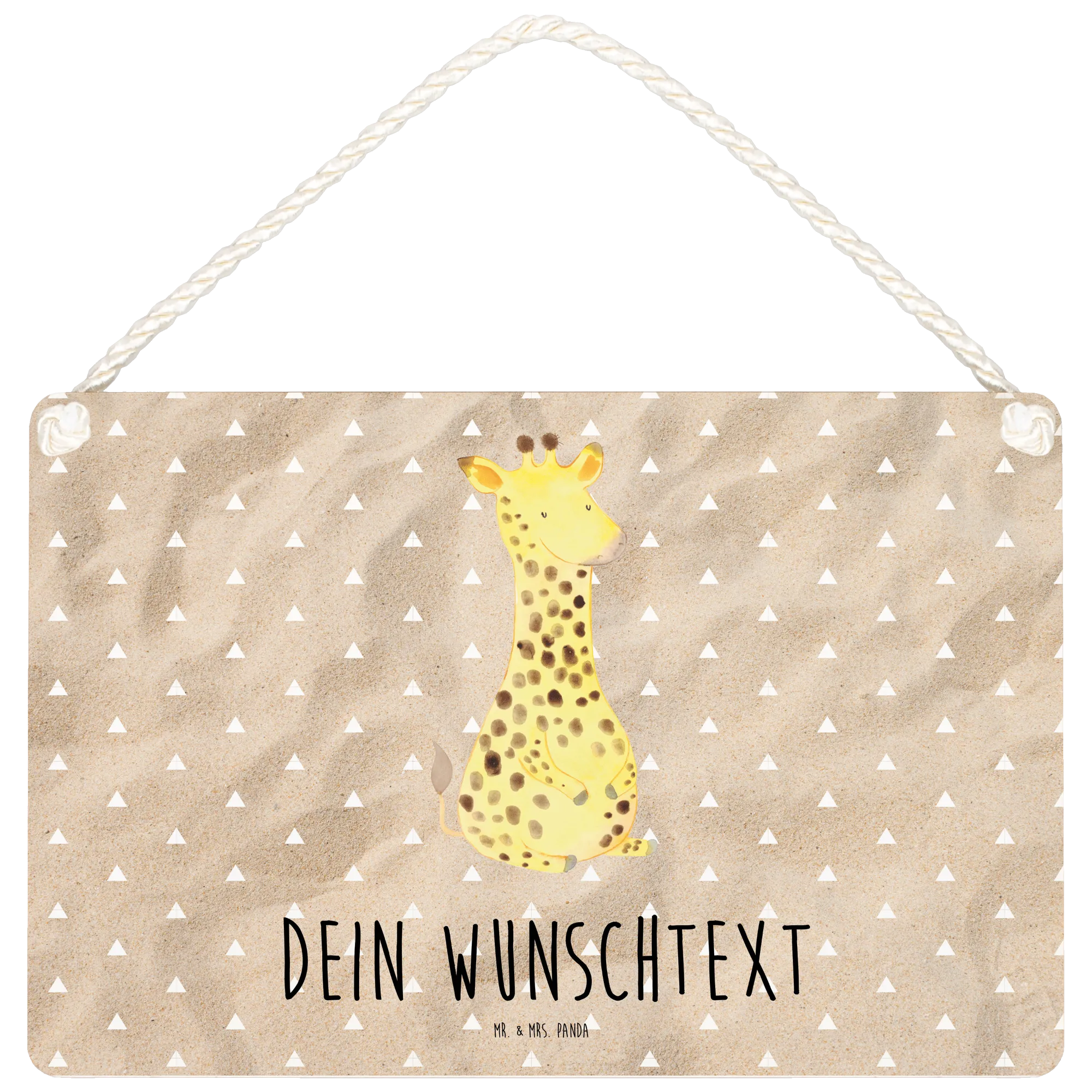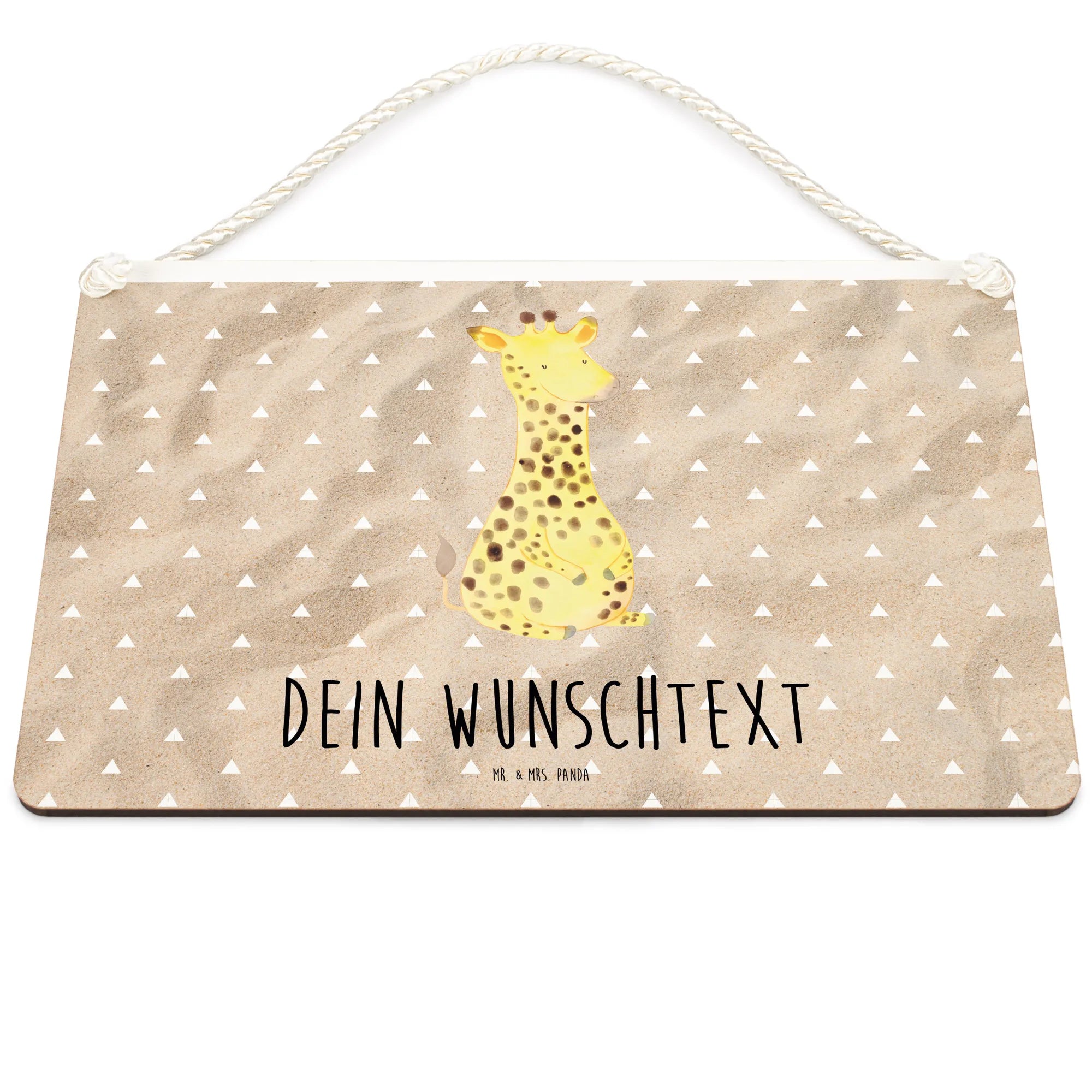 Das personalisierte Deko Schild mit der zufrieden lächelnden Giraffe aus der Afrika-Kollektion von Mr. & Mrs. Panda ist das perfekte Geschenk für all jene, die Abenteuer und die exotische Tierwelt lieben. Du kannst das Schild nach deinen Wünschen mit einem Namen oder Wunschtext personalisieren, was es zu einem ganz besonderen in deiner Dekoration macht.