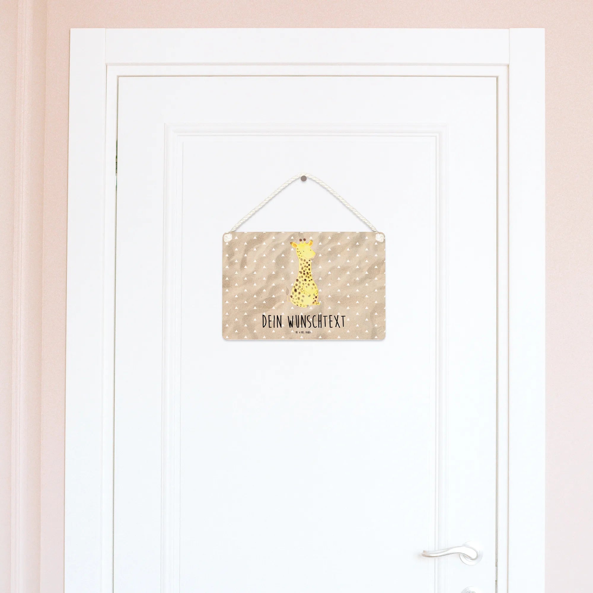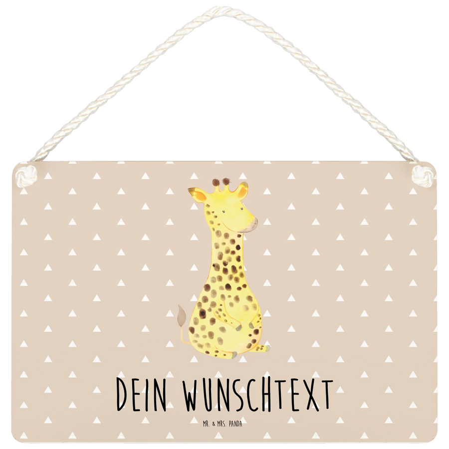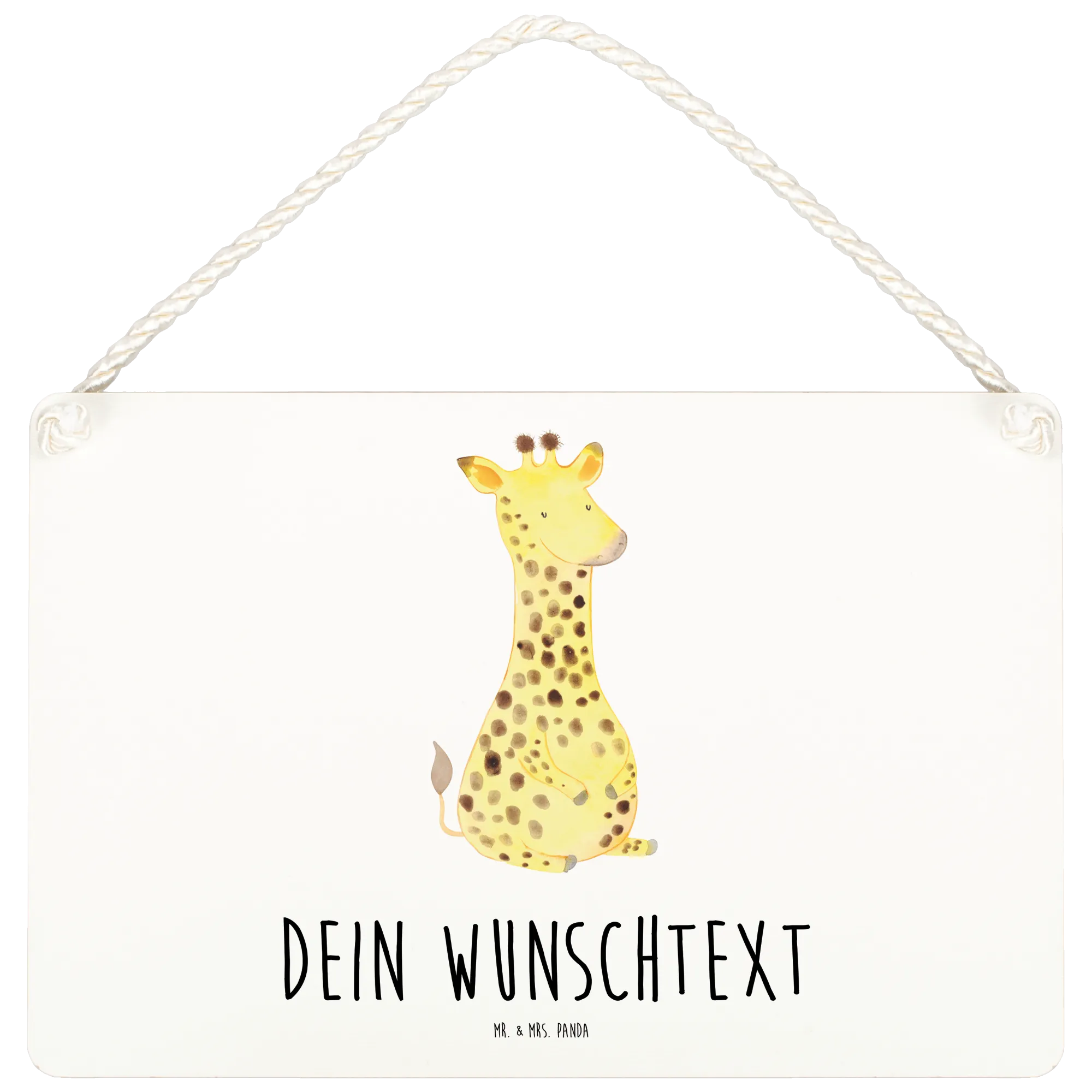 Das personalisierte Deko Schild mit der zufrieden lächelnden Giraffe aus der Afrika-Kollektion von Mr. & Mrs. Panda ist das perfekte Geschenk für all jene, die Abenteuer und die exotische Tierwelt lieben. Du kannst das Schild nach deinen Wünschen mit einem Namen oder Wunschtext personalisieren, was es zu einem ganz besonderen in deiner Dekoration macht.