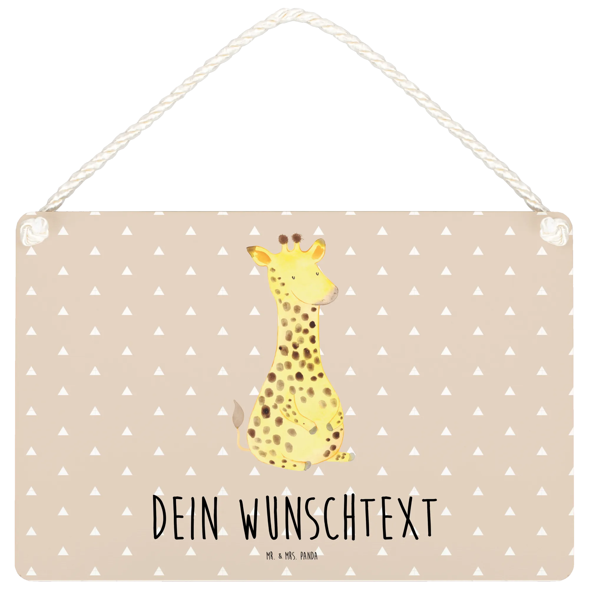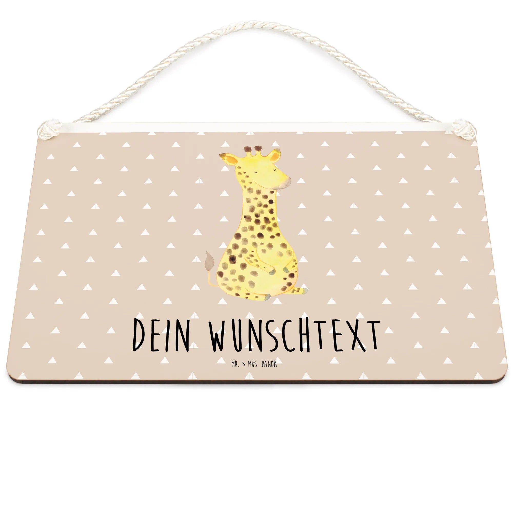 Personalisiertes Deko Schild Giraffe Zufrieden - DIN A6 - Sandig