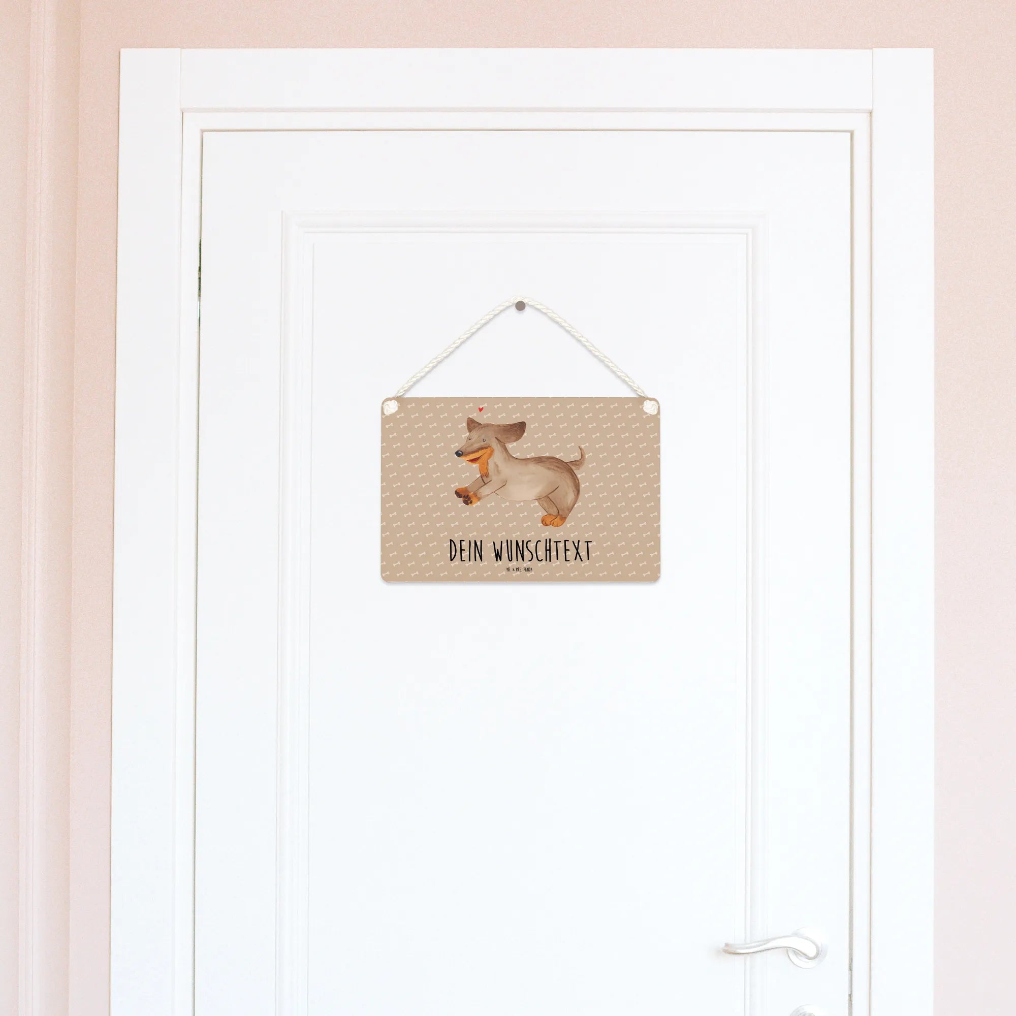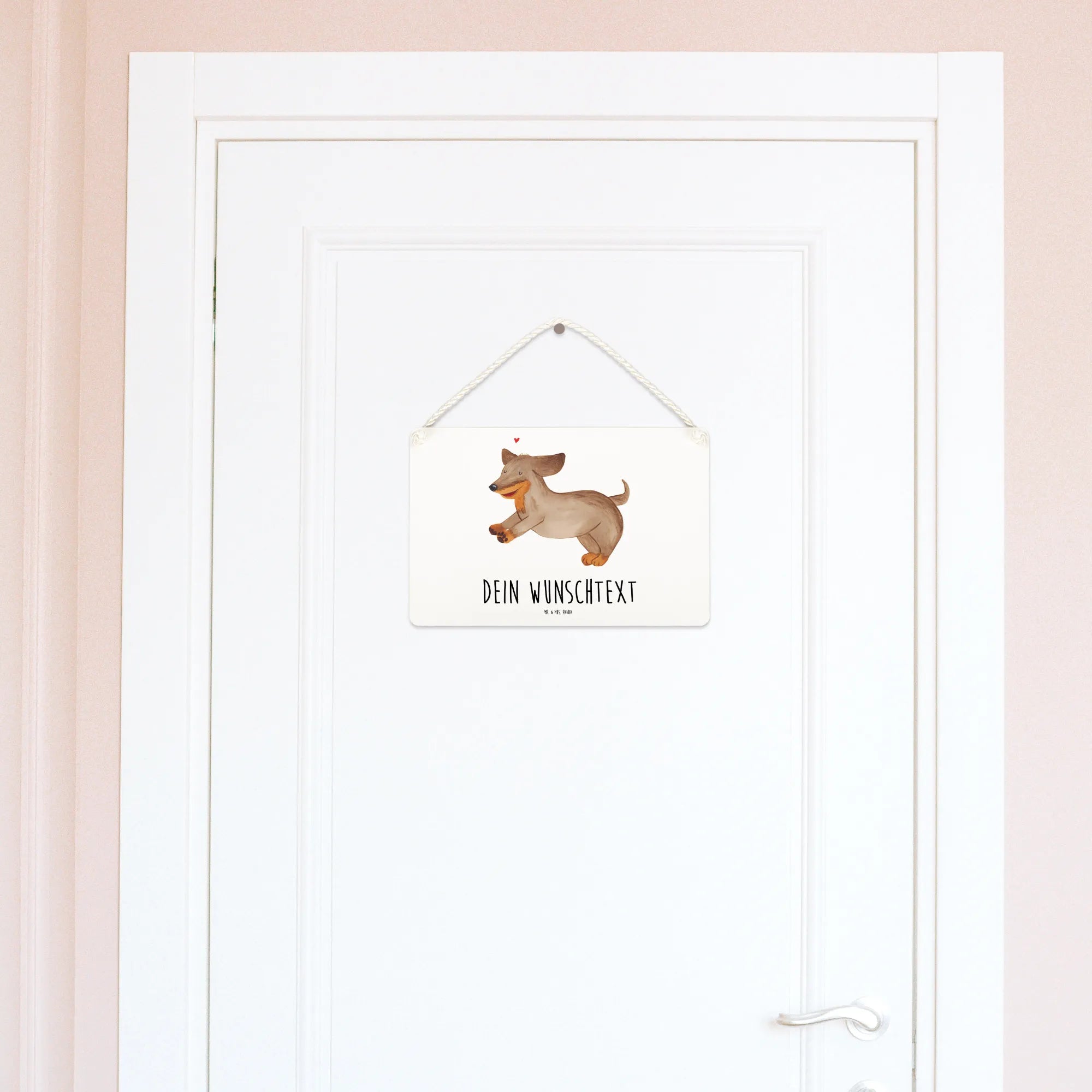 Das personalisierte Deko Schild mit dem fröhlichen Dackelmotiv von Mr. & Mrs. Panda ist das perfekte Geschenk für jeden Tierliebhaber und Hundebesitzer. Es vereint niedliches Design mit liebevoller Botschaft und bringt ein Lächeln auf die Gesichter aller, die es sehen.