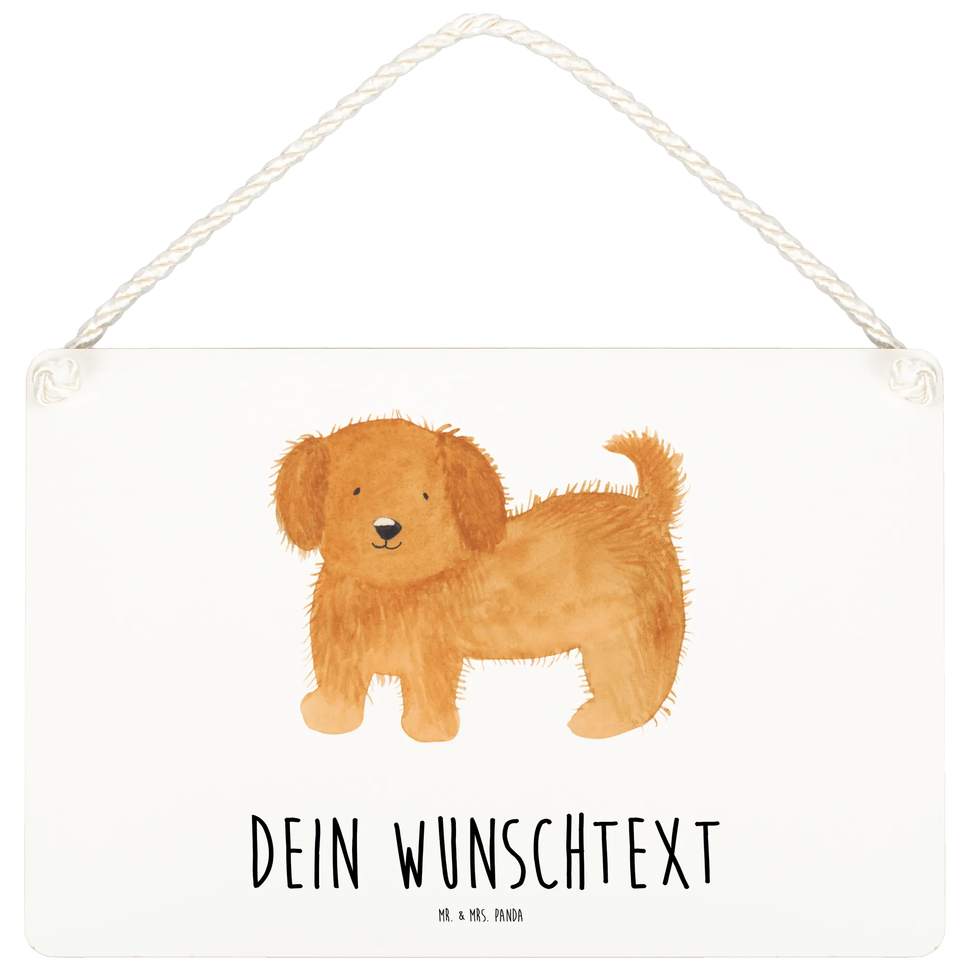 Personalisiertes Deko Schild Hund Flauschig - DIN A6 - Weiß