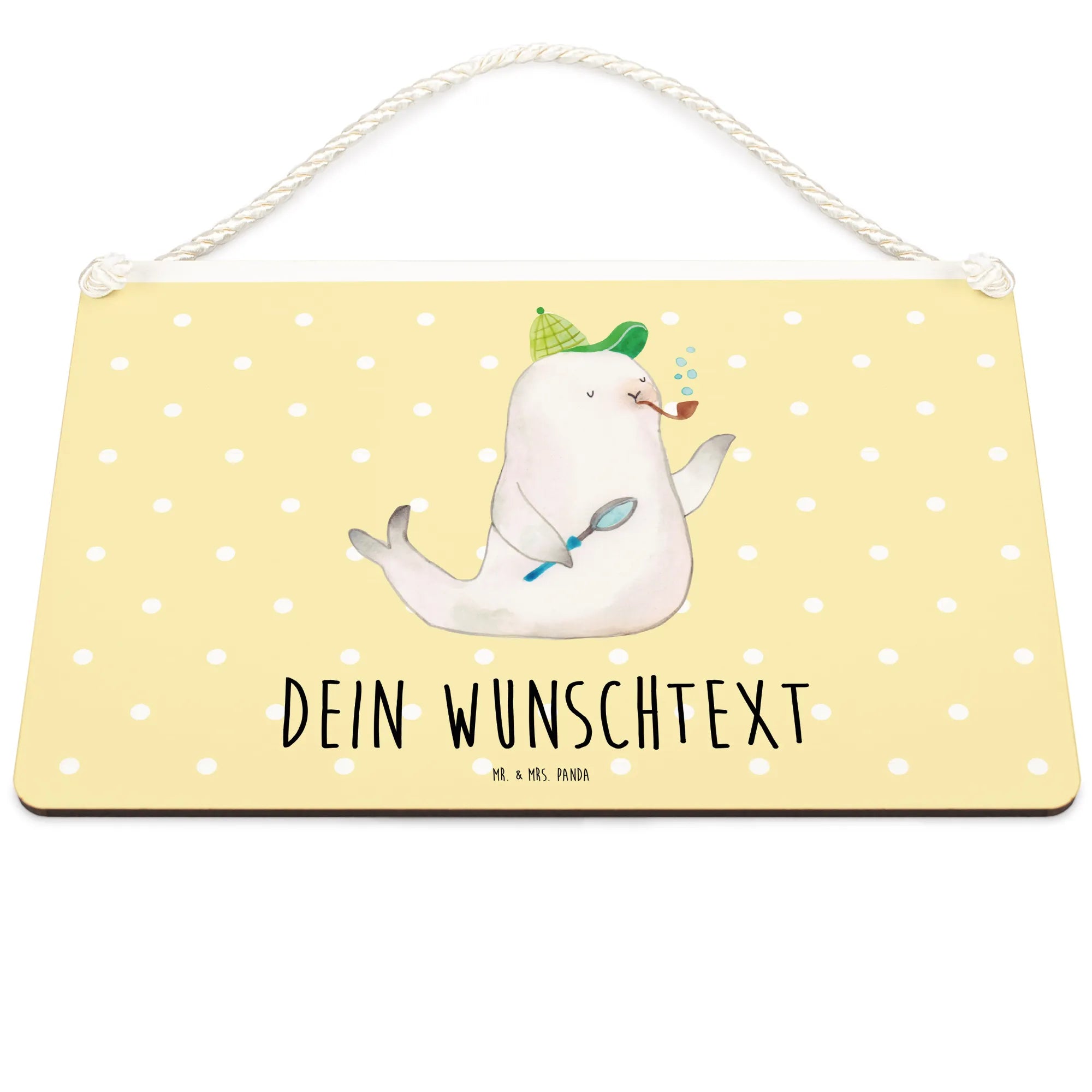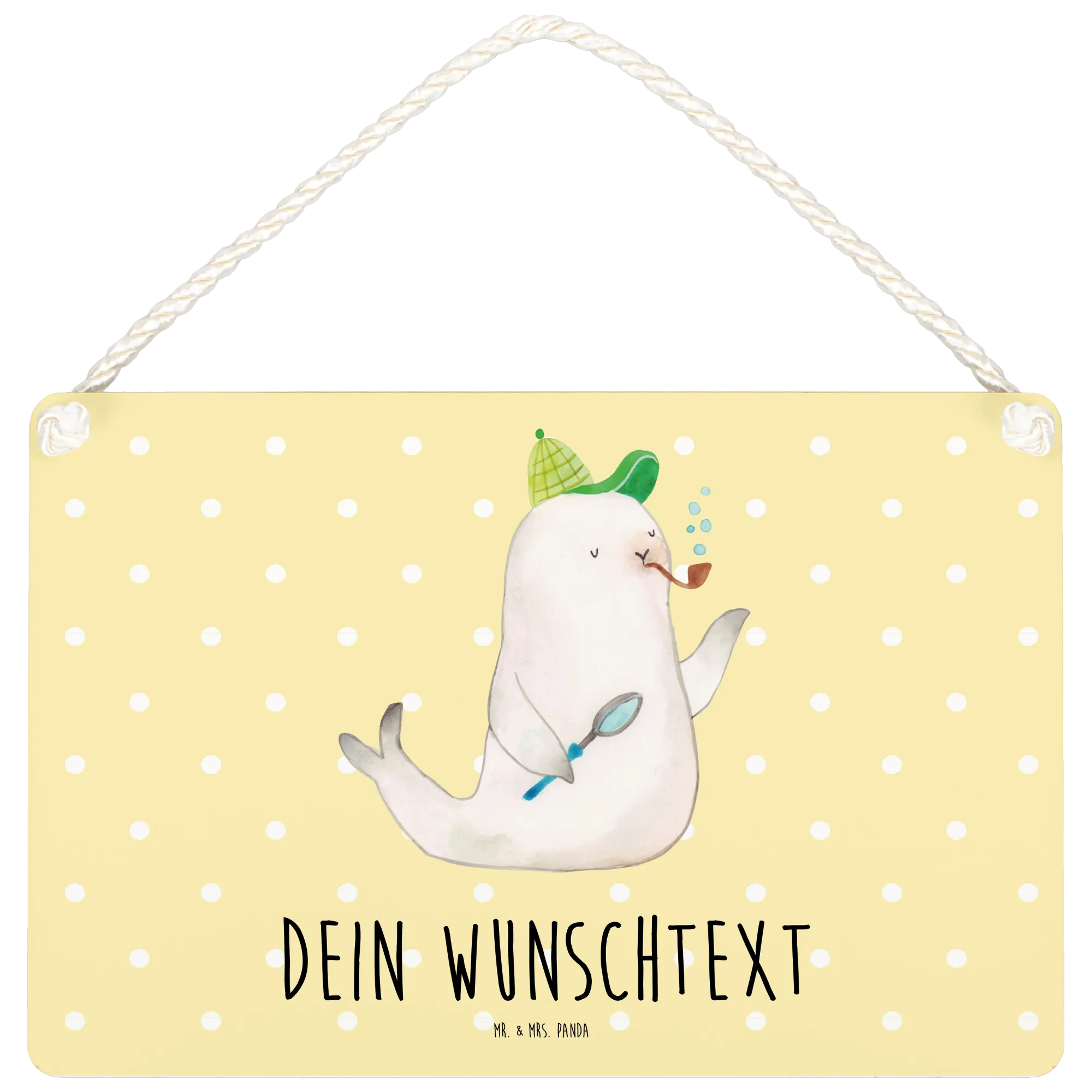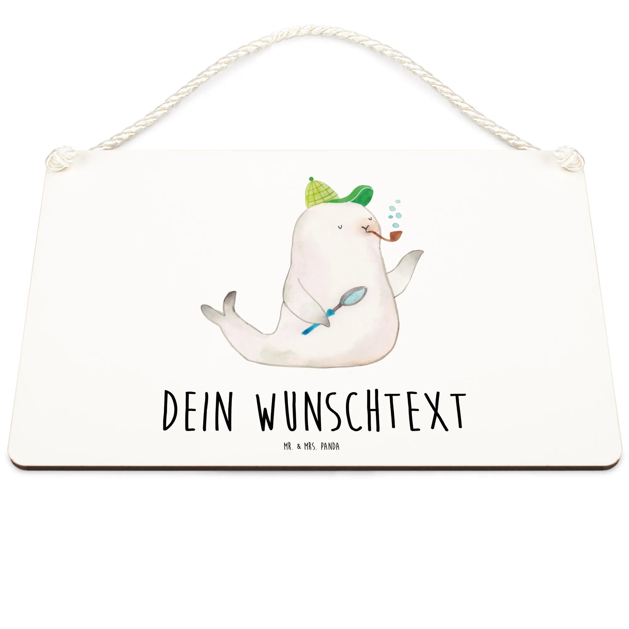 Personalisiertes Deko Schild Robbe Sherlock - DIN A6 - Weiß