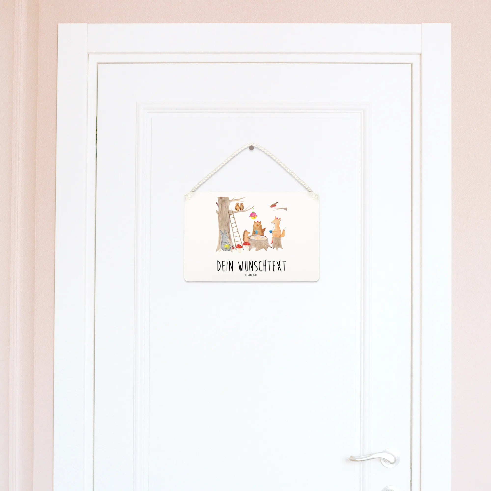 Du suchst das perfekte Geschenk für Freunde, Familie oder einfach für dich selbst? Dann ist das personalisierte Deko Schild "Waldtiere Picknick" aus der bezaubernden Small World Kollektion von Mr. & Mrs. Panda genau das Richtige! Mit niedlichen Waldtieren wie Fuchs, Hase, Igel und Eichhörnchen, die alle zusammen ein fröhliches Picknick im zauberhaften Wald veranstalten, bringt dieses Schild sofort gute Laune in jedes Zuhause. Das Schild ist personalisierbar mit deinem Wunschnamen oder einem Wunschtext. So wird es zu einem ganz persönlichen Kunstwerk, das in jedem Raum zum Blickfang wird.