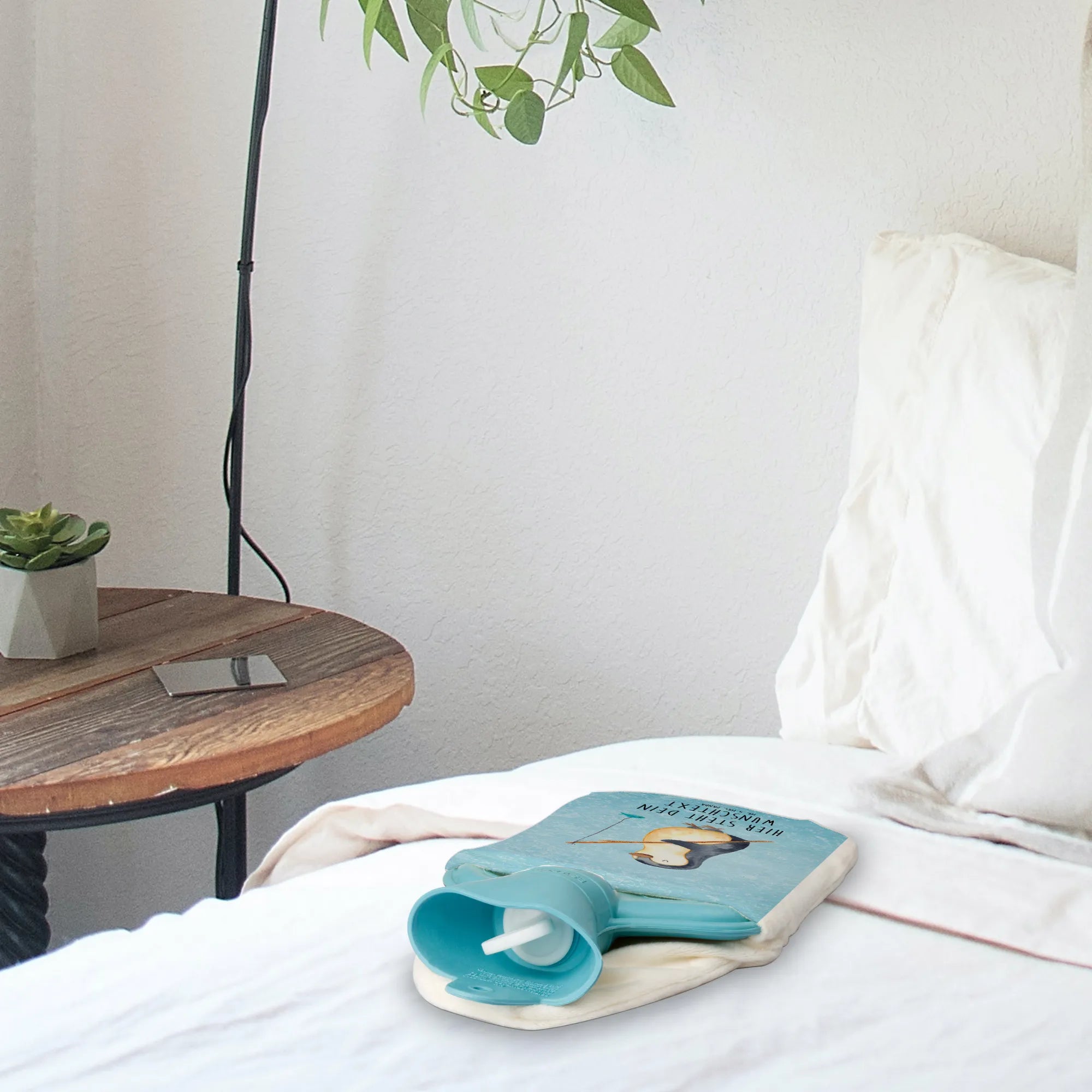 Spersonalizowany termofor Pingwin Wędkarz - lodowoniebieski