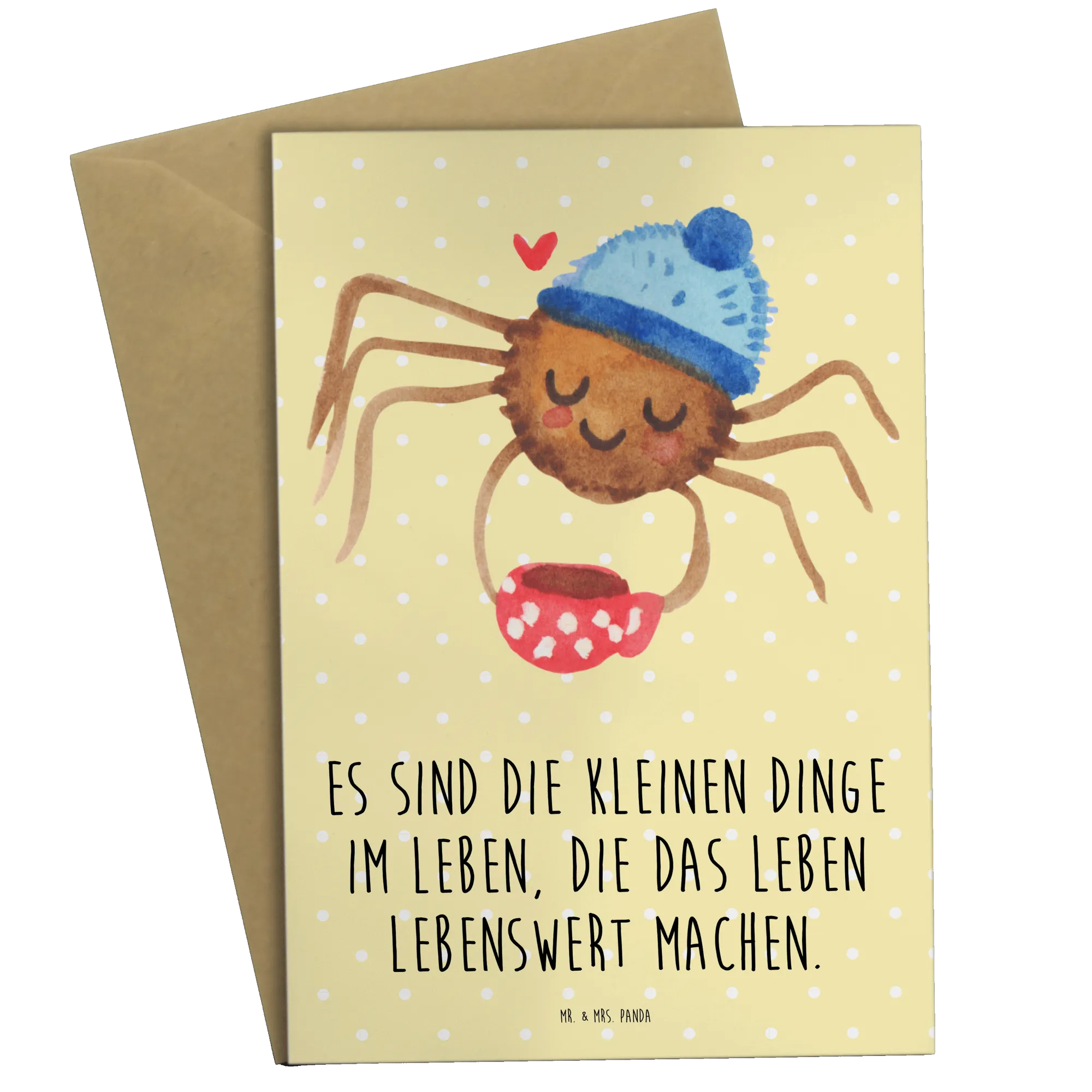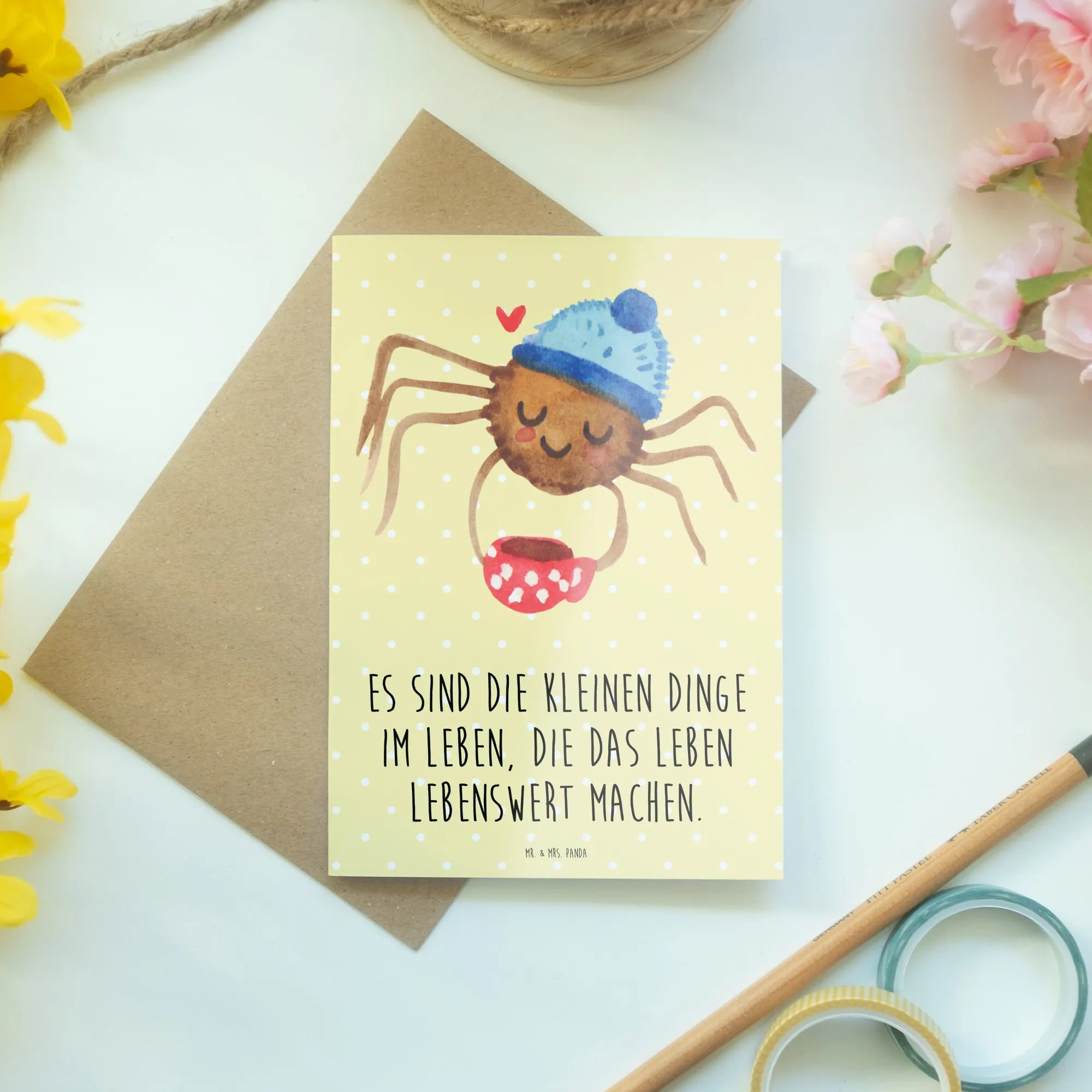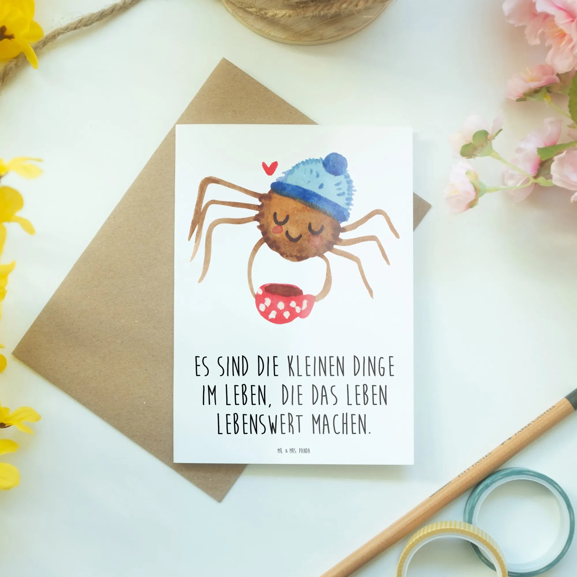 Die Grußkarte "Spinne Agathe Kaffee" aus der bezaubernden Kollektion von Mr. & Mrs. Panda ist das perfekte Geschenk für all jene, die die kleinen, charmanten Dinge im Leben schätzen!