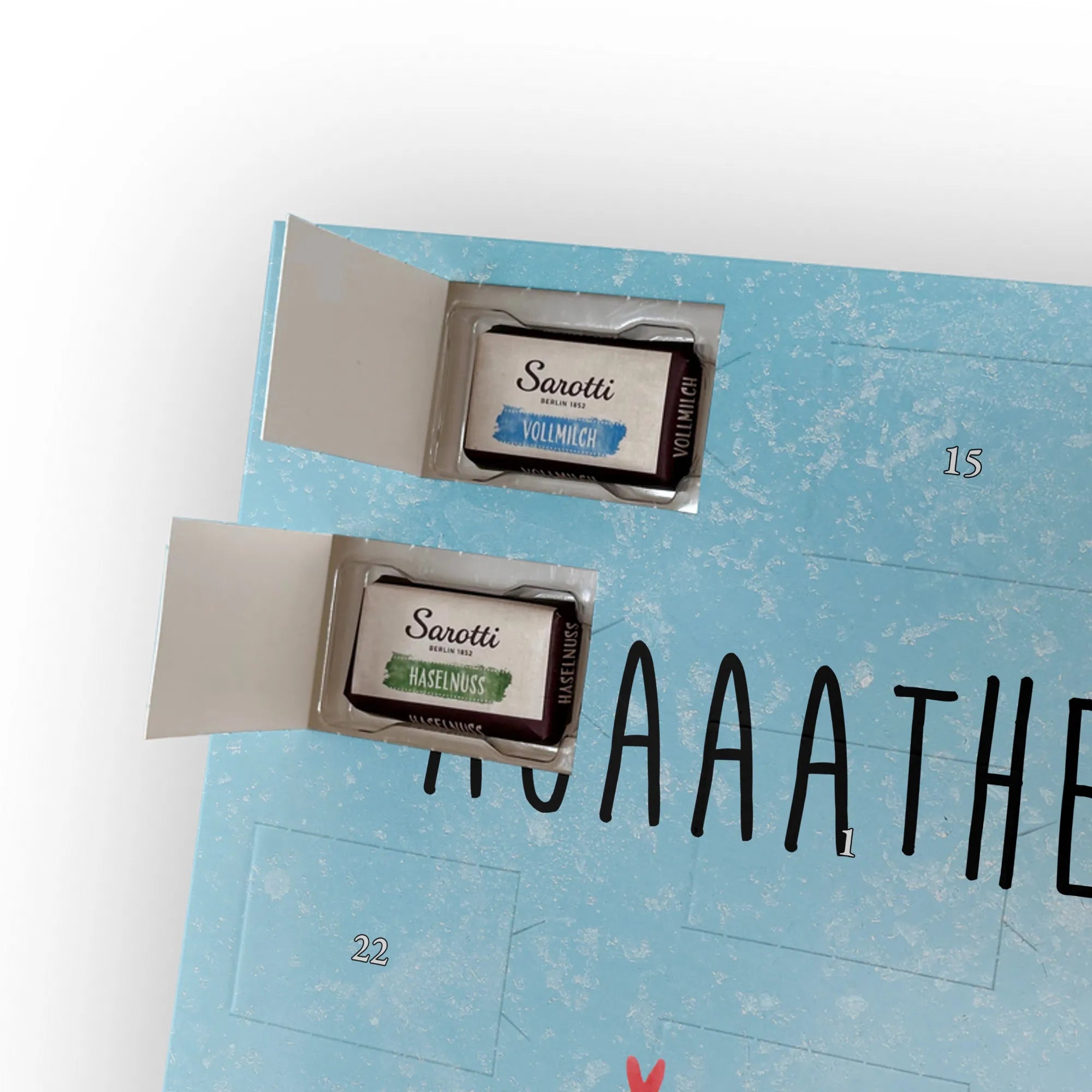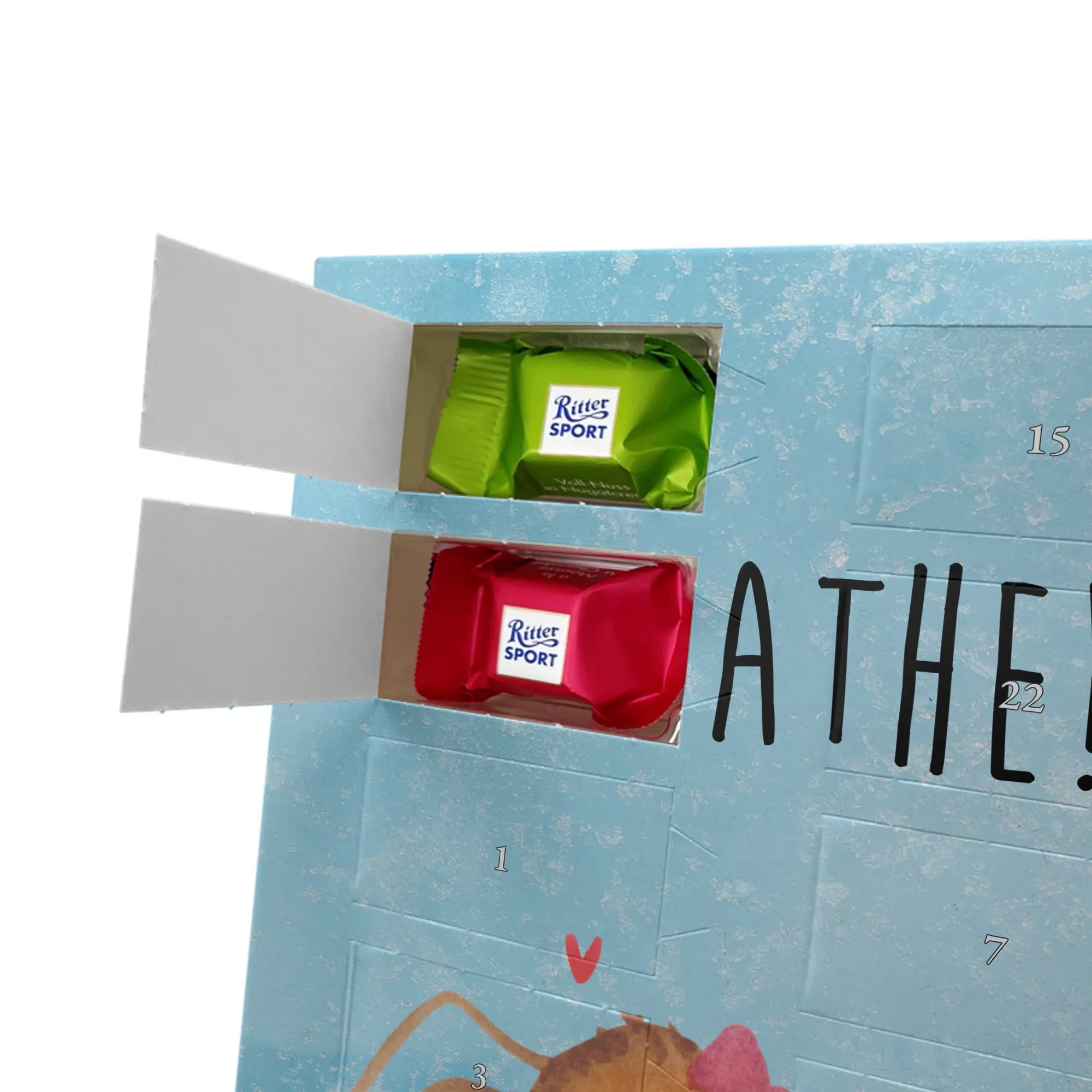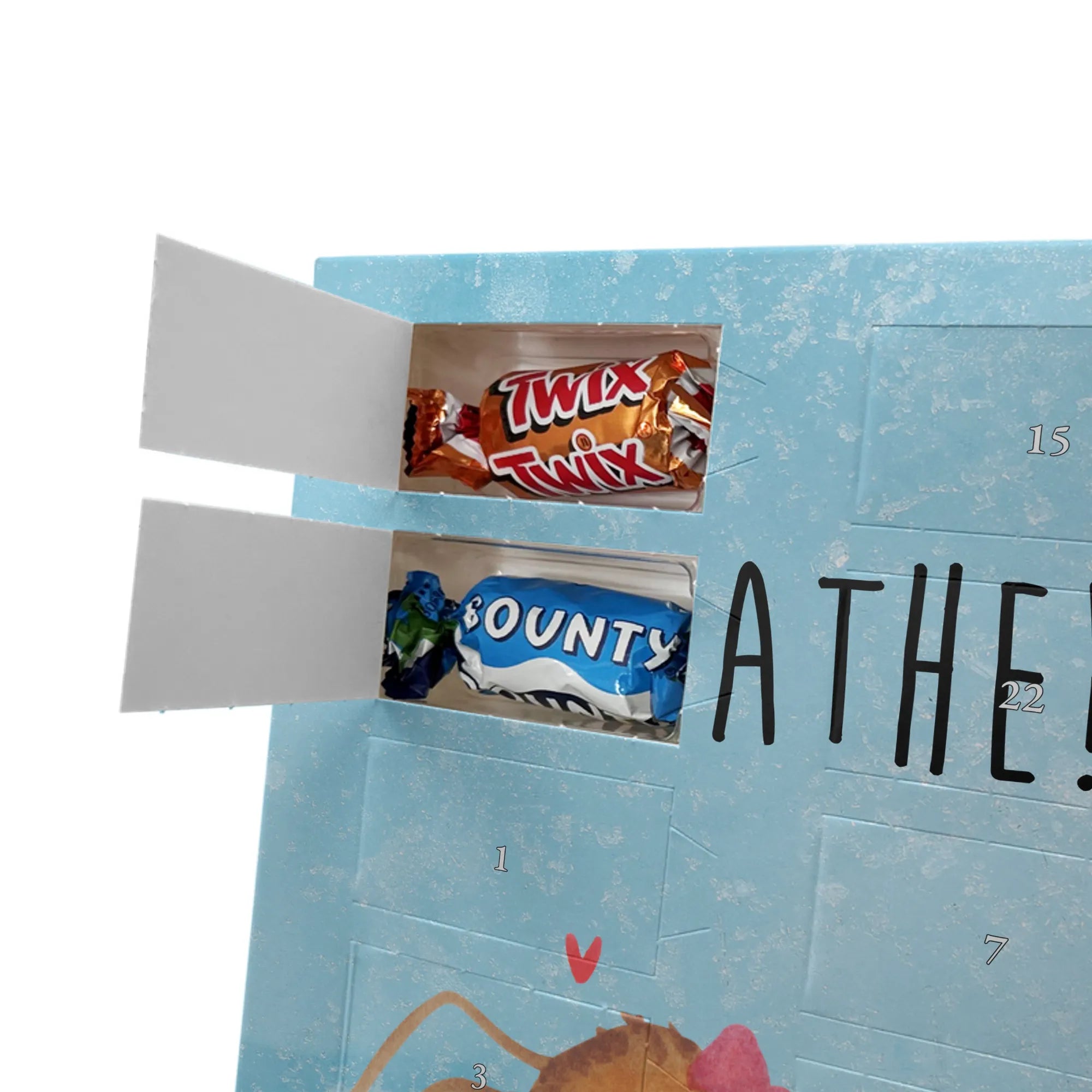 Personalisierter Schoko Foto Adventskalender Spinne Agathe Freude - Celebrations - Eisblau