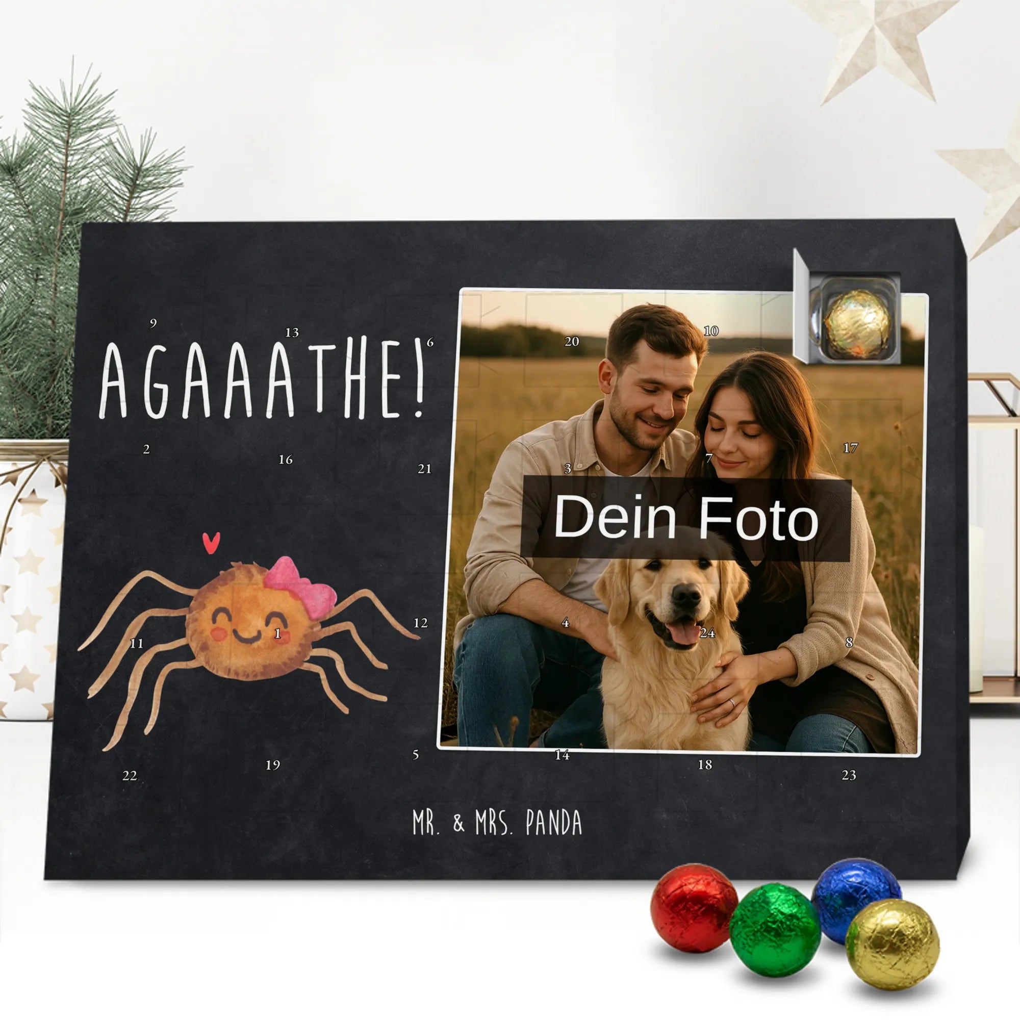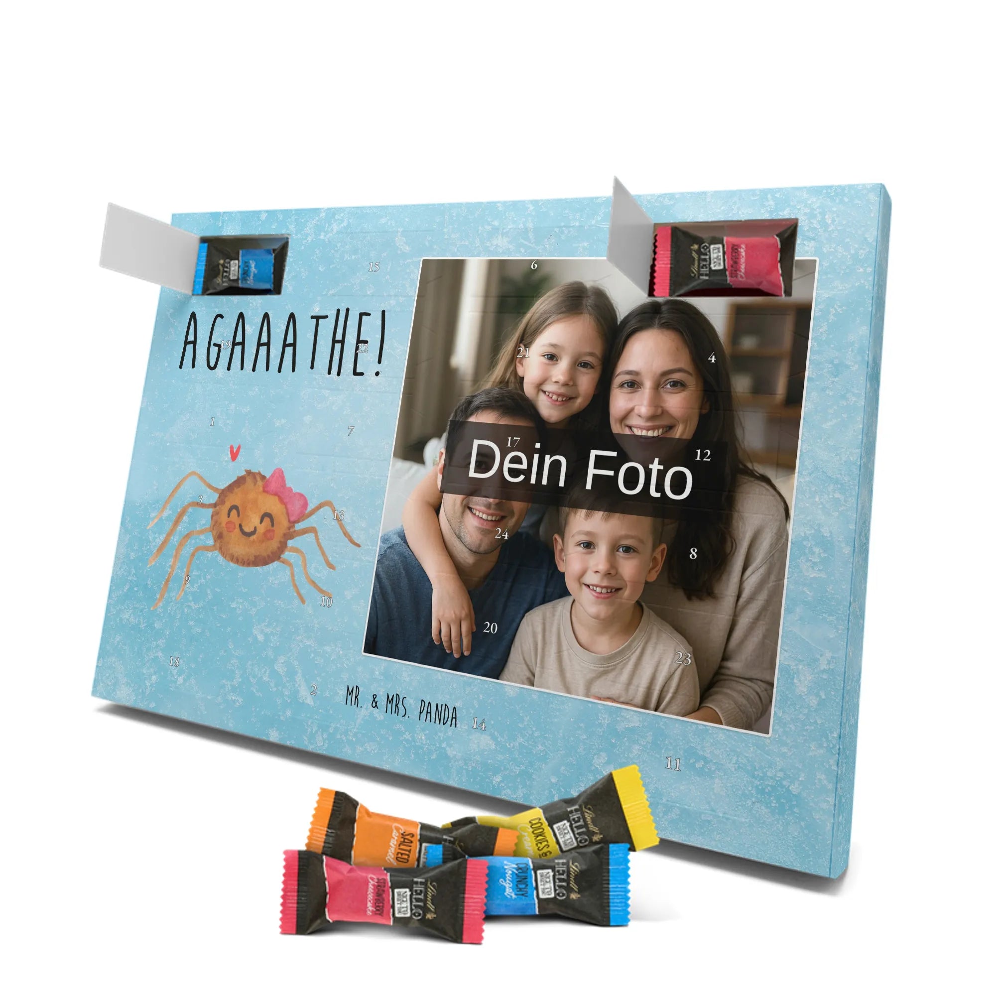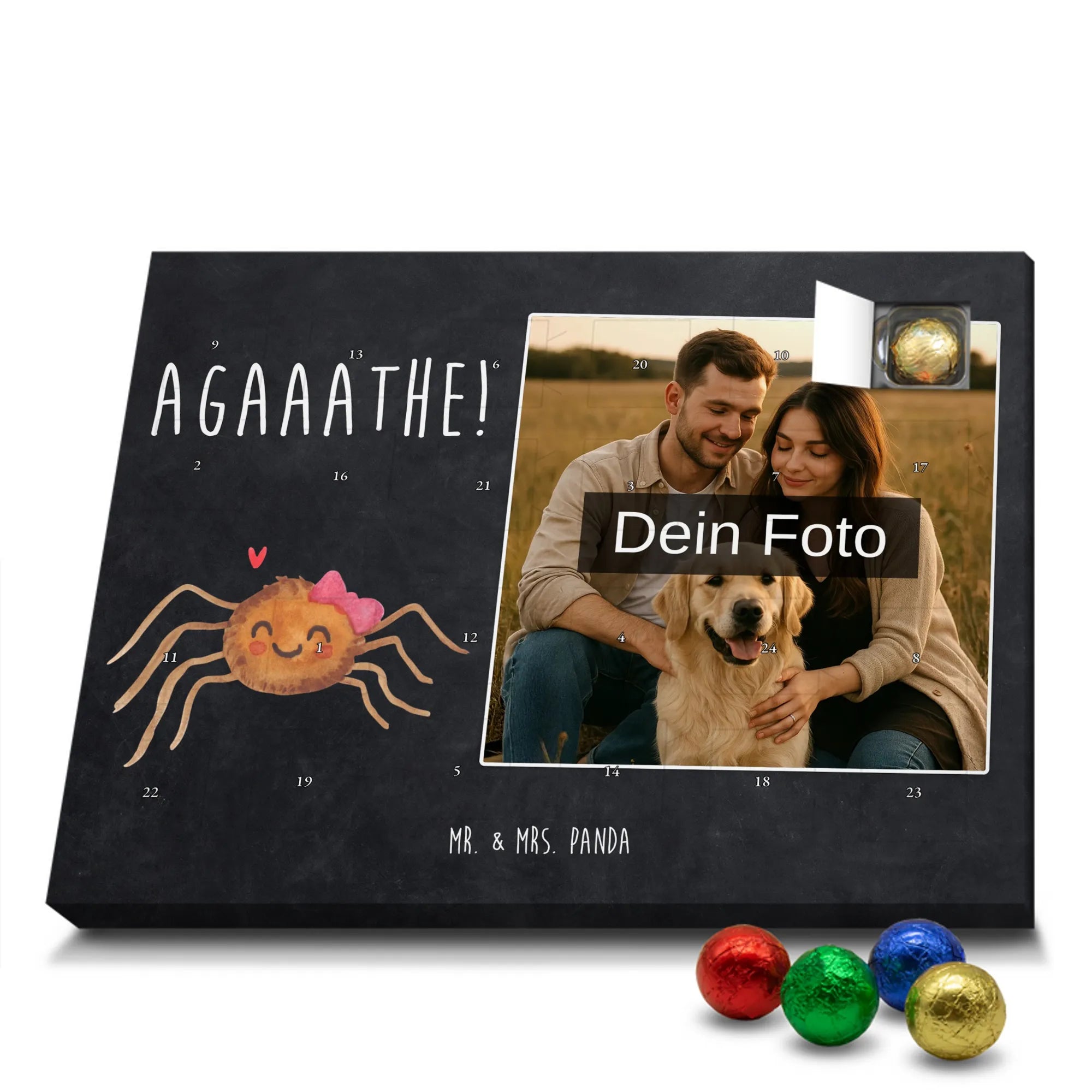 Personalisierter Schoko Foto Adventskalender Spinne Agathe Freude – Mr. & Mrs. Panda