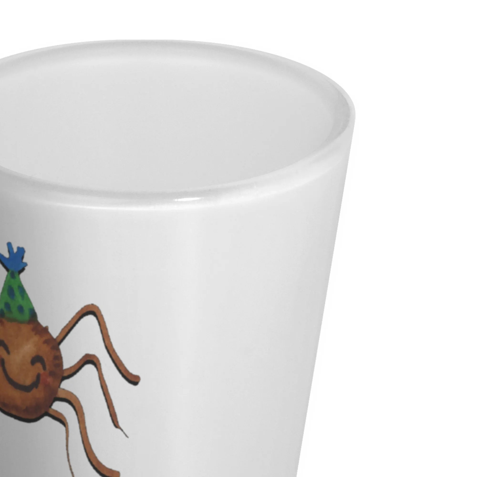 Mit einem Füllvolumen von 40 ml ist es ideal für all jene Getränke, die einen besonderen Moment einfordern. Der brillante, glänzende Vollfarb-Glasdruck sorgt dafür, dass die süße Spinne Agathe mit ihrem freundlichen Lächeln und dem strahlenden Partyhut einfach zum Ansehen schön ist und lange hält.
