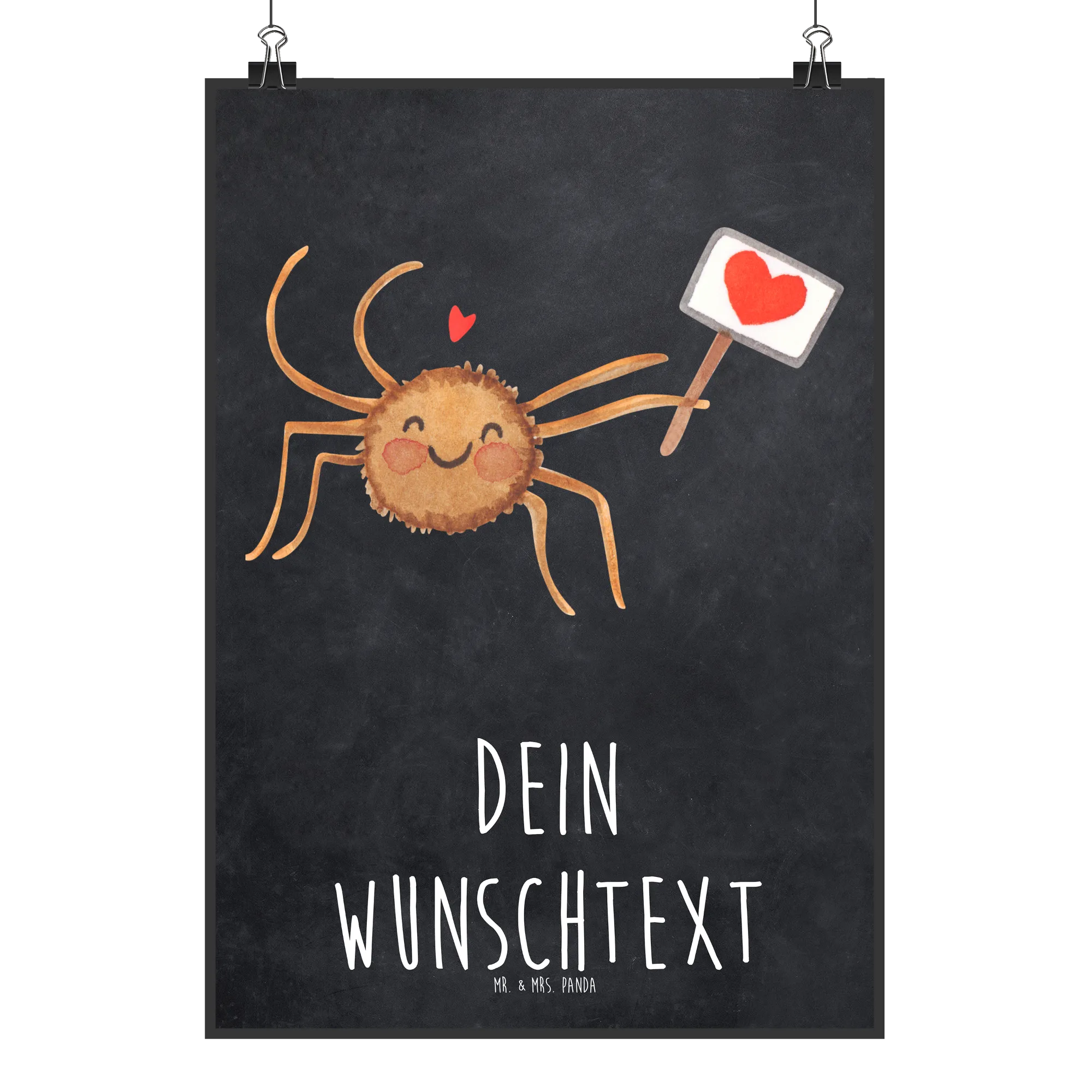 Entdecke das wundervolle, personalisierte Poster mit der herzlichen Spinne Agathe aus der beliebten Kollektion von Mr. & Mrs. Panda! Dieses handgemalte Poster ist nicht nur ein echter Blickfang, sondern auch eine inspirierende Dekoration, die Glück und Vertrauen ausstrahlt. Die niedliche Spinne Agathe, die fröhlich lacht, hält ein kleines Herzschild in ihren Armen und erinnert dich und deine Liebsten, die kleinen Dinge im Leben wertzuschätzen.