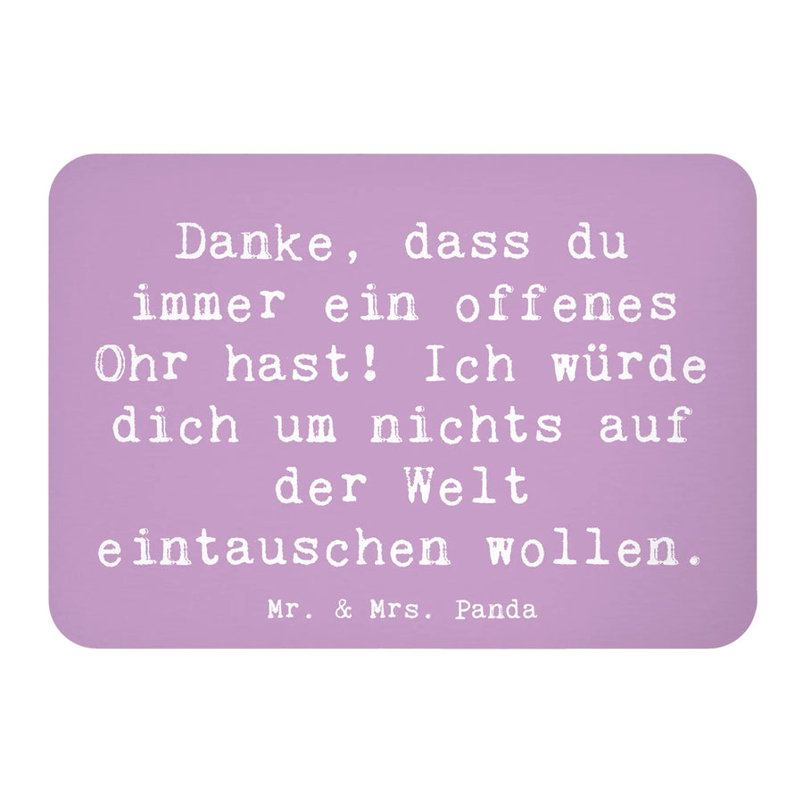 Der wunderschöne Kühlschrankmagnet von Mr. & Mrs. Panda ist das perfekte Geschenk für deinen Freund! Mit dem liebevollen Spruch "Danke, dass du immer ein offenes Ohr hast! Ich würde dich um nichts auf der Welt eintauschen wollen." vermittelt dieser Magnet deine Dankbarkeit auf eine herzliche und persönliche Weise. Egal, ob zum Geburtstag, als kleine Aufmerksamkeit zwischendurch oder einfach nur, um jemandem zu zeigen, wie wichtig er dir ist – dieser Magnet wird garantiert ein Lächeln auf sein Gesicht zaubern.
