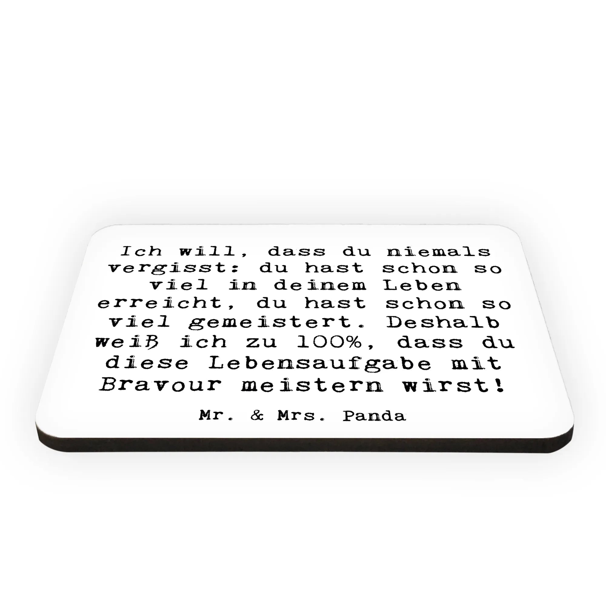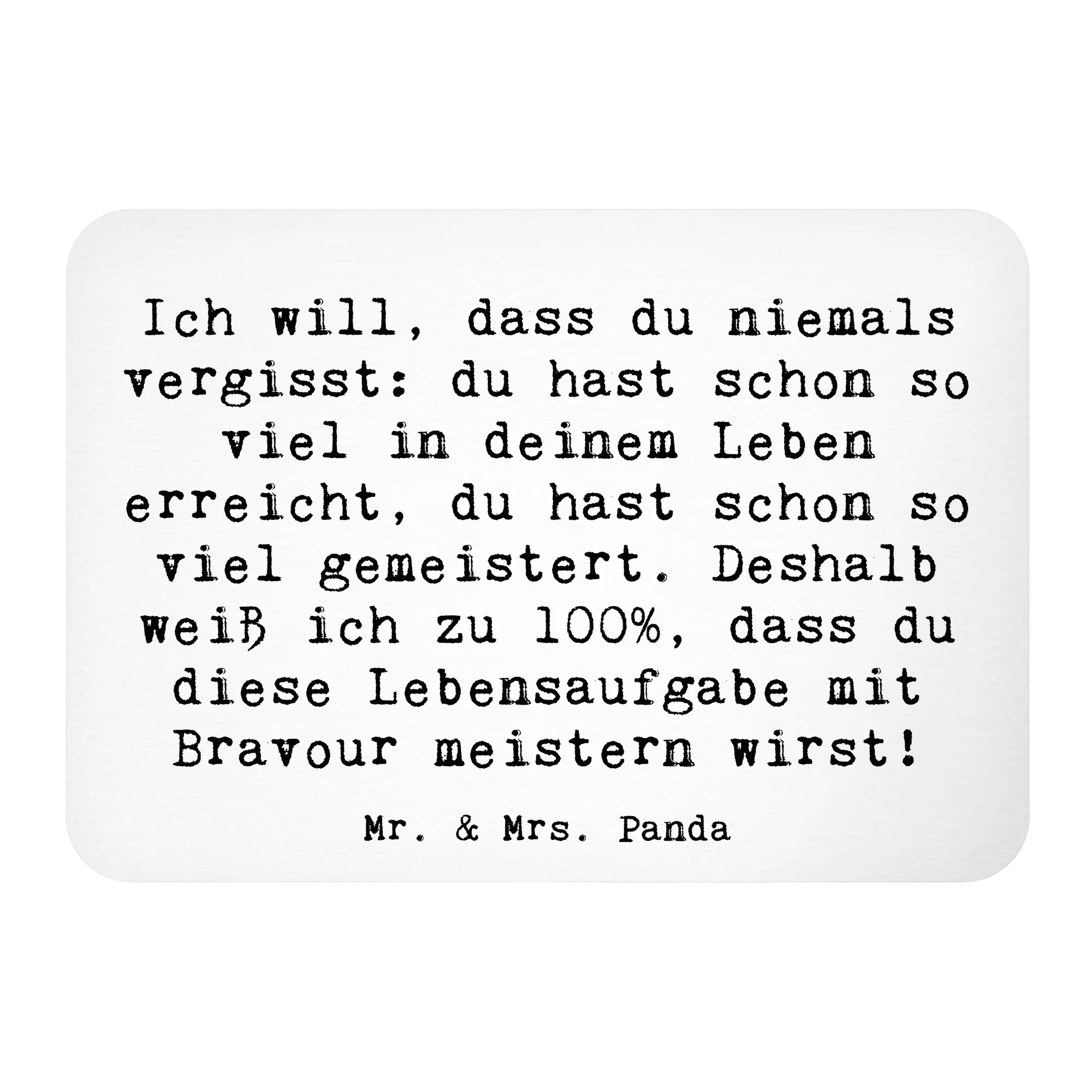 Der Magnet Trost aus der besonderen Kollektion Gefühle & Stimmungen von Mr. & Mrs. Panda ist das perfekte Geschenk für Freunde und Familie, die einen liebevollen Trostspender benötigen. Mit einem motivierenden Spruch, der sagt: "Ich will, dass du niemals vergisst: du hast schon so viel in deinem Leben erreicht, du hast schon so viel gemeistert. Deshalb weiß ich zu 100%, dass du diese Lebensaufgabe mit Bravour meistern wirst!", ist dieser Magnet nicht nur eine zauberhafte Kühlschrankdekoration, sondern auch ein täglicher Reminder, die eigenen Stärken zu erkennen.