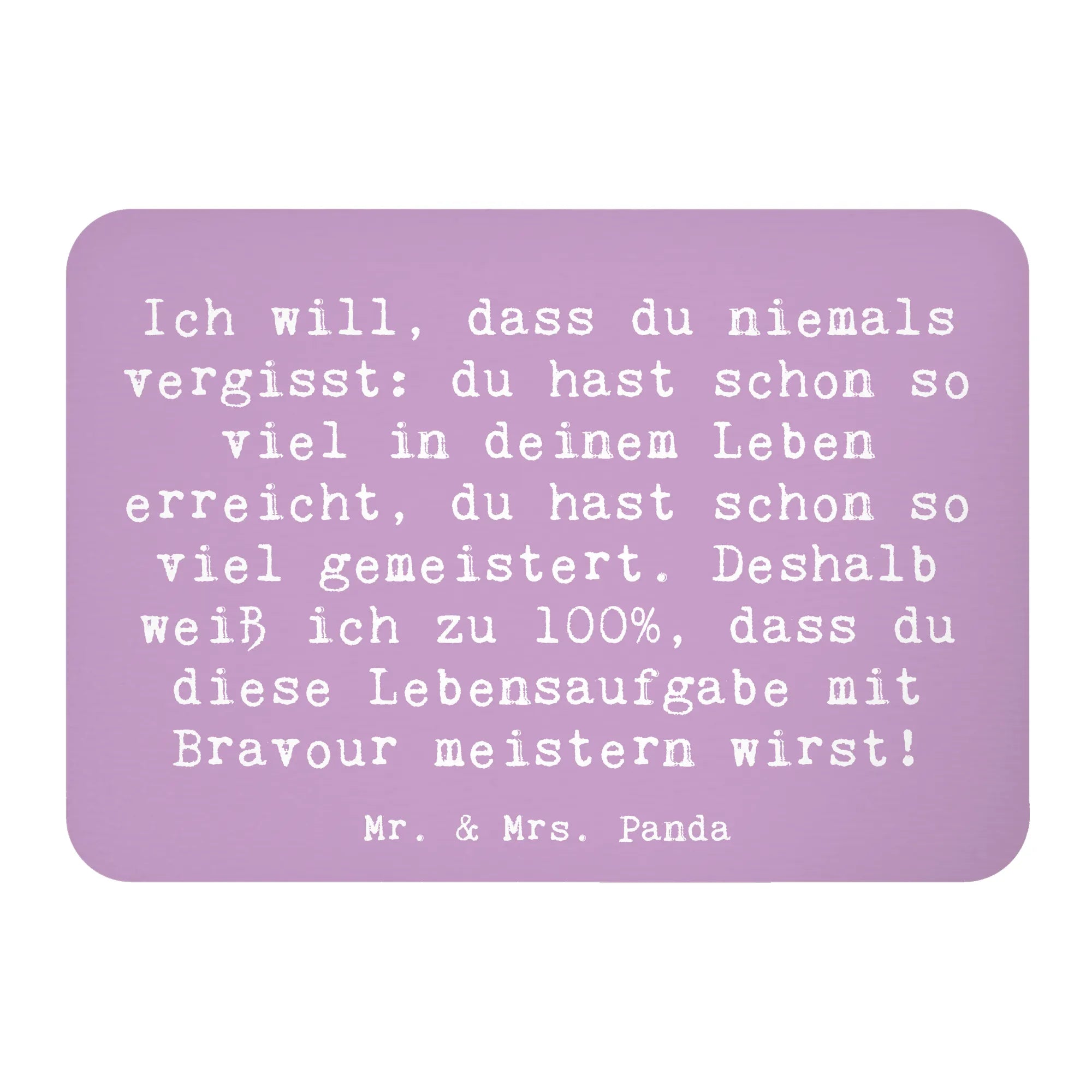 Er ist mehr als nur ein Magnet – er ist eine ständige Erinnerung daran, dass du bereits so viel in deinem Leben erreicht hast. Mit seiner Botschaft "Ich will, dass du niemals vergisst: du hast schon so viel in deinem Leben erreicht, du hast schon so viel gemeistert. Deshalb weiß ich zu 100%, dass du diese Lebensaufgabe mit Bravour meistern wirst!" schenkt er dir Trost und Motivation zugleich. Egal ob für Freunde, Familie oder Kollegen – dieser Magnet ist ideal, um an schwierigen Tagen ein wenig Mut zu spenden.