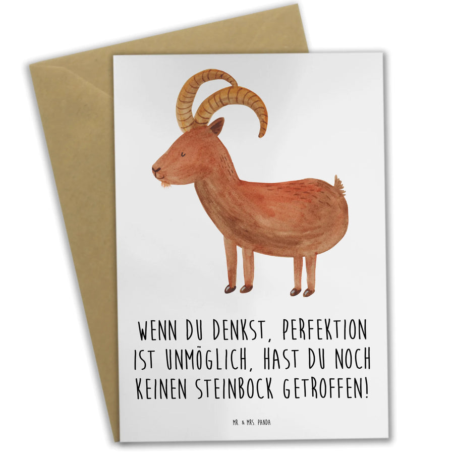 Die Grußkarte mit dem süßen Steinbock-Motiv aus der Sternzeichen-Kollektion von Mr. & Mrs. Panda ist mehr als nur eine Karte - sie ist ein Ausdruck deiner persönlichen Wertschätzung! Jeder Steinbock ist einzigartig und hat eine bemerkenswerte Persönlichkeit, die in dieser Karte perfekt zur Geltung kommt. Auf der Vorderseite prangt der liebevoll gestaltete Steinbock, begleitet von dem witzigen Slogan: "Wenn du denkst, Perfektion ist unmöglich, hast du noch keinen Steinbock getroffen!". Diese Botschaft ist nicht nur humorvoll, sondern spricht auch die besonderen Eigenschaften der Steinbock-Geborenen an, die oft als perfektionsliebend und zielstrebig gelten. Ob zur Hochzeit, zum Geburtstag oder einfach so, um einem Freund oder einer Freundin eine Freude zu machen – diese Grußkarte ist ideal für alle Anlässe!