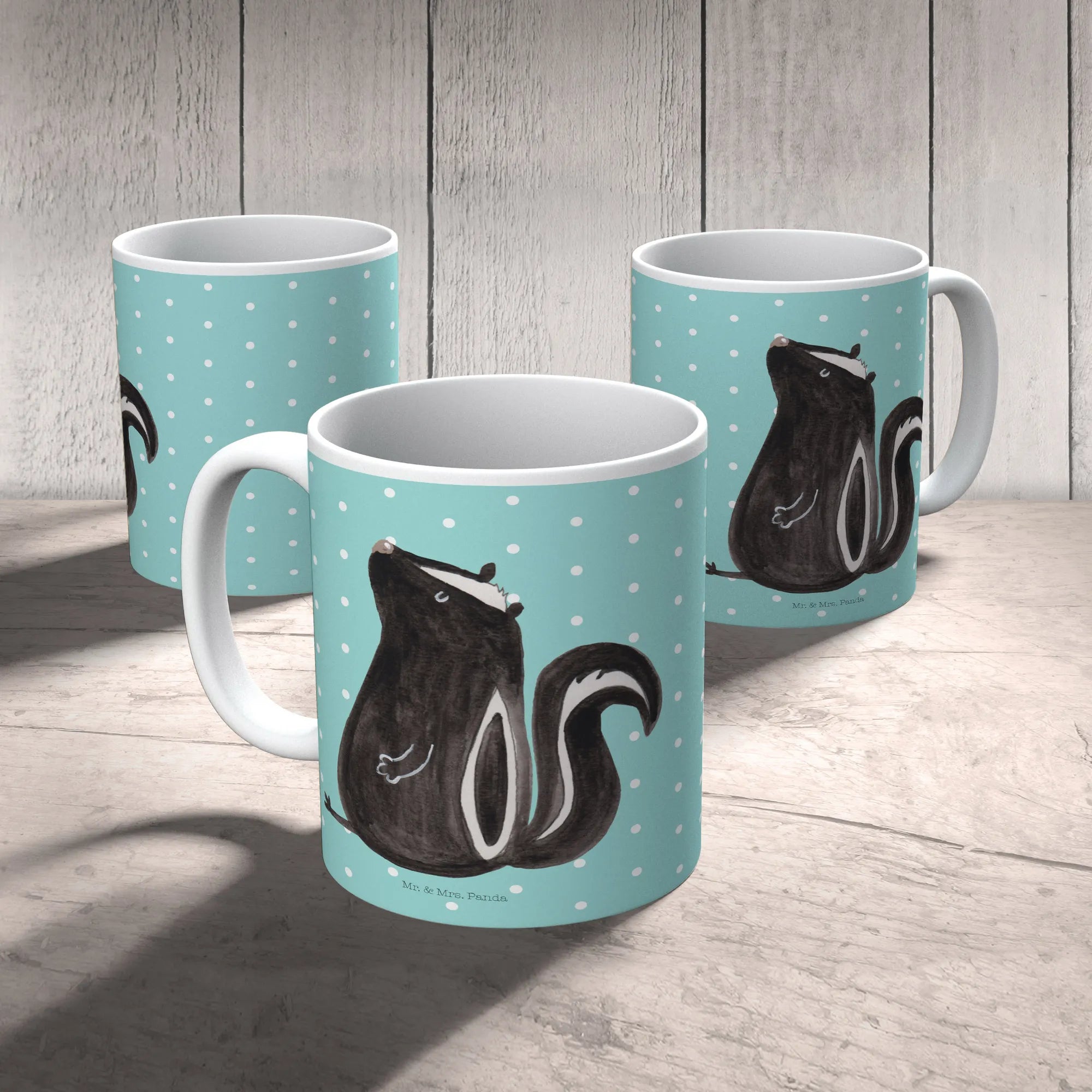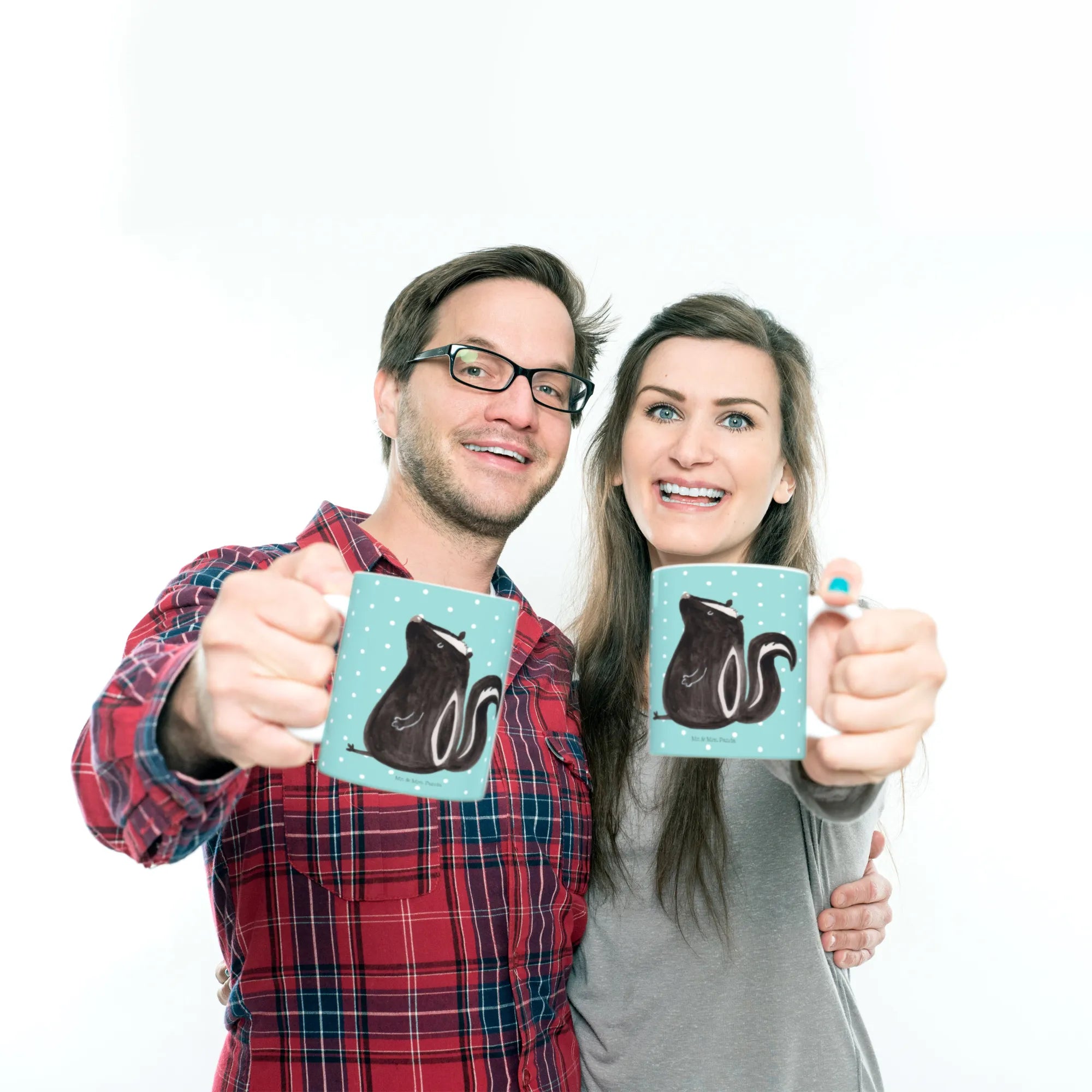 Kubek skunks siedzenie - z napisem - Ceramika - Turkusowy Pastel