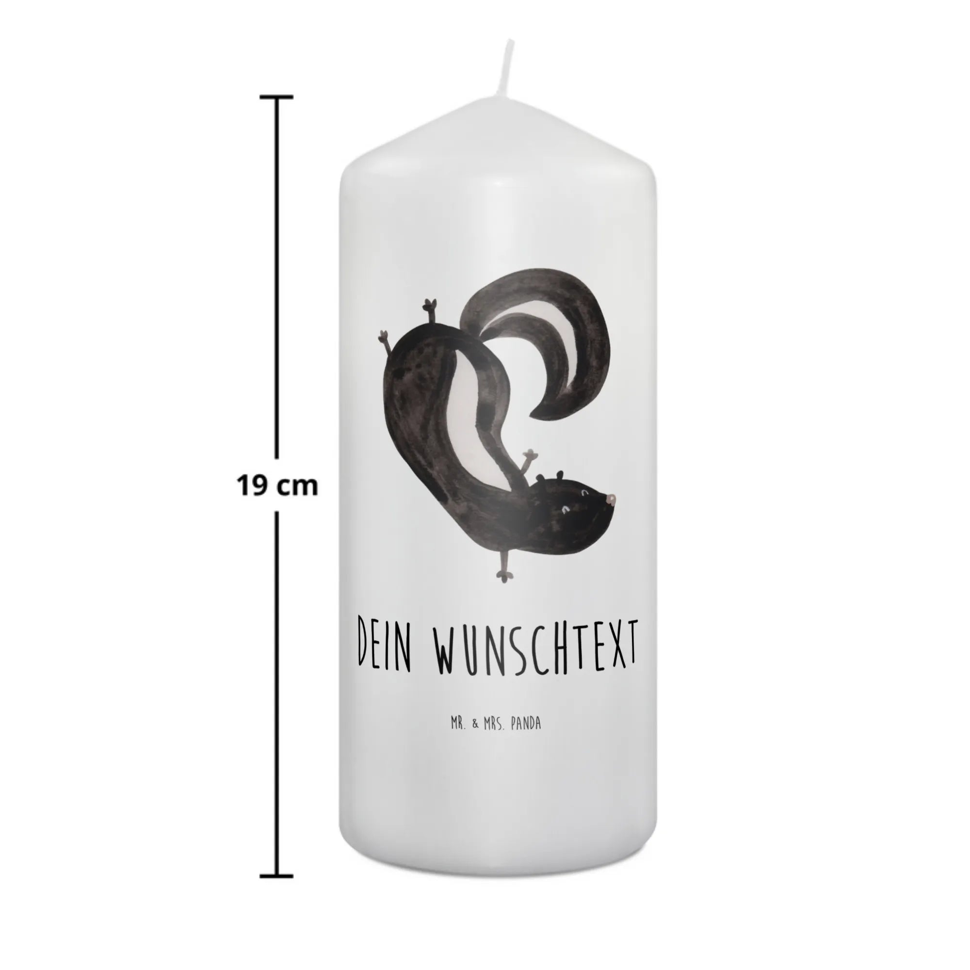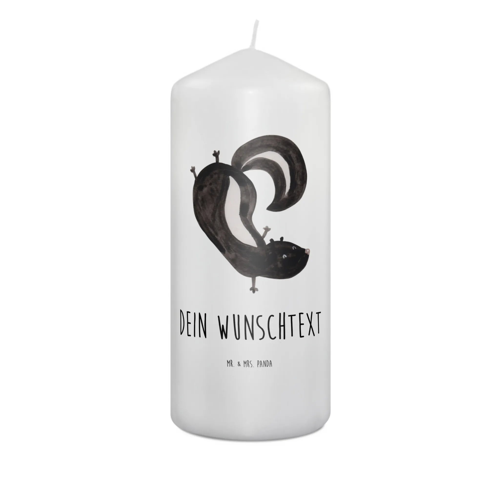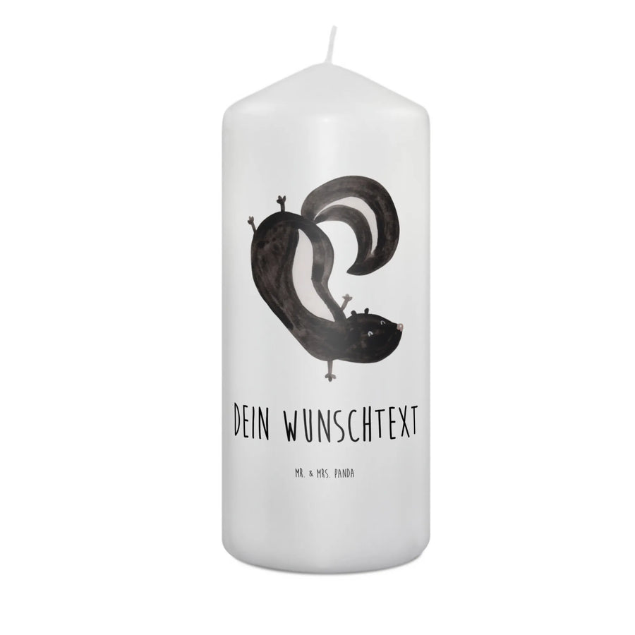 Wenn du auf der Suche nach einem ganz besonderen Geschenk bist, dann ist die personalisierte Kerze mit dem süßen Stinktier-Motiv genau das Richtige für dich! Diese edle und wunderschöne Kerze von Mr. & Mrs. Panda begeistert nicht nur durch ihr charmantes Design, sondern auch durch die Möglichkeit, sie mit deinem Wunschnamen oder einem eigenen Text zu personalisieren.